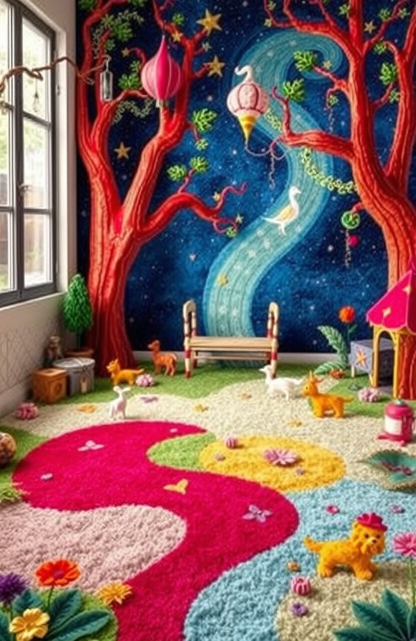 Consider using a whimsical rug in a playroom or bedroom for a touch of fantasy. It’s like having a storybook come to life on your floor!