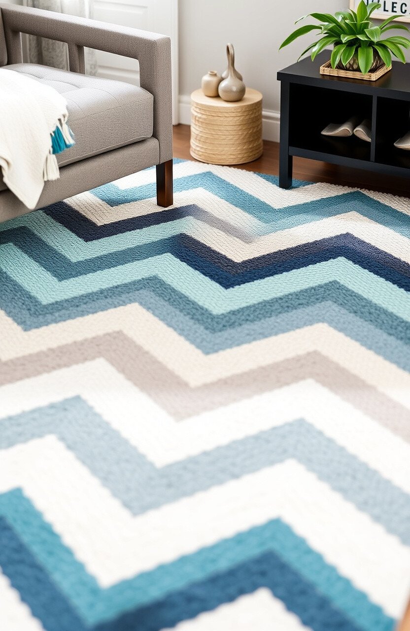 Consider using a graphic rug in a living room or bedroom for a touch of flair. It’s like having a piece of modern art right on your floor.