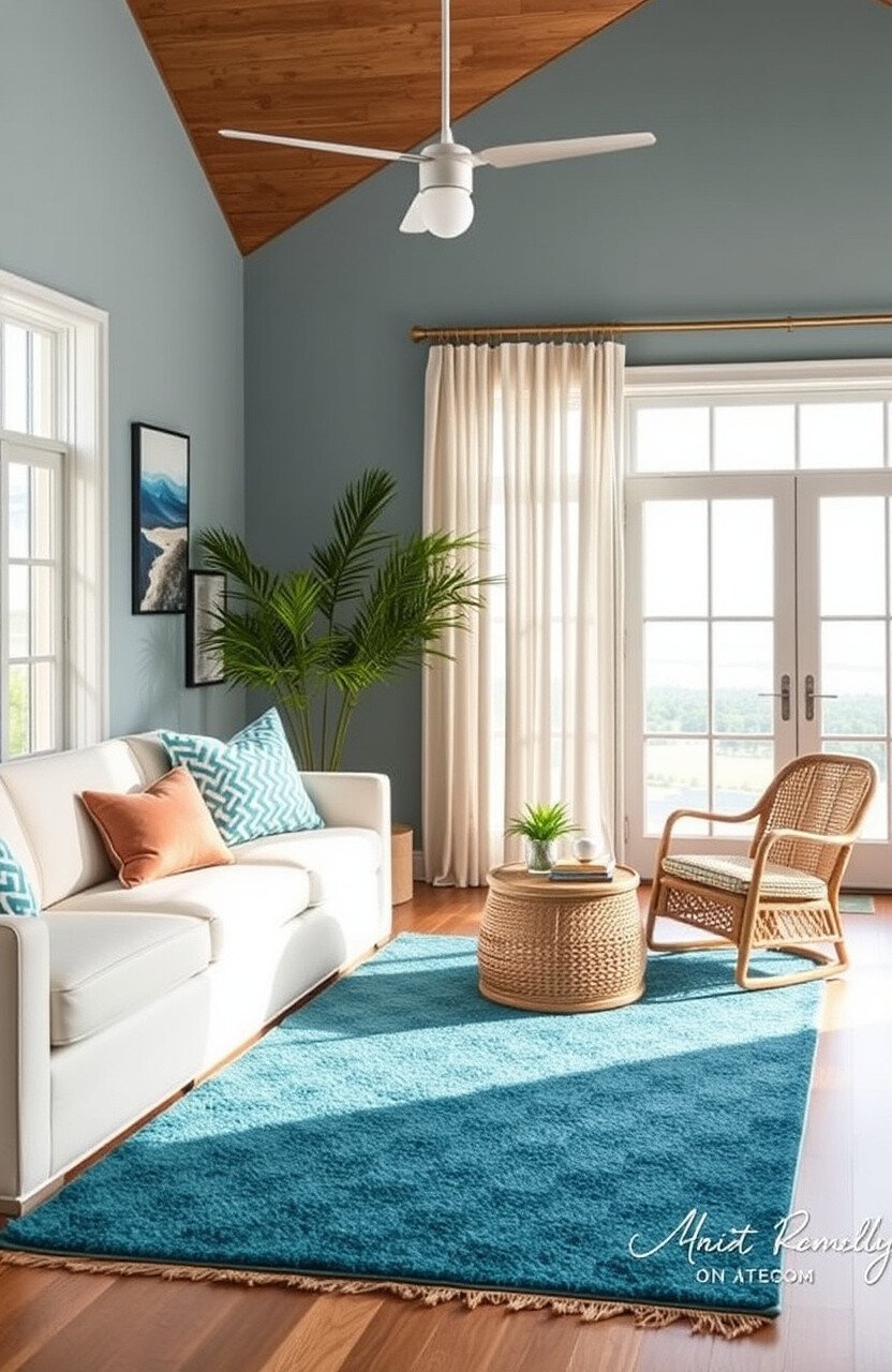 Consider using a coastal rug in a living room or bedroom for a touch of ocean charm. It’s like bringing a piece of the coast into your home.
