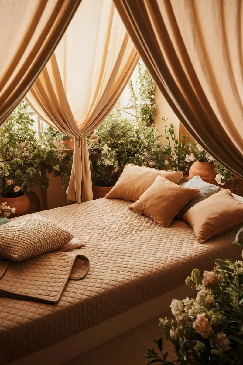 Create a tranquil space with a Zen retreat daybed. Use natural materials like bamboo and soft, earthy tones to promote relaxation.