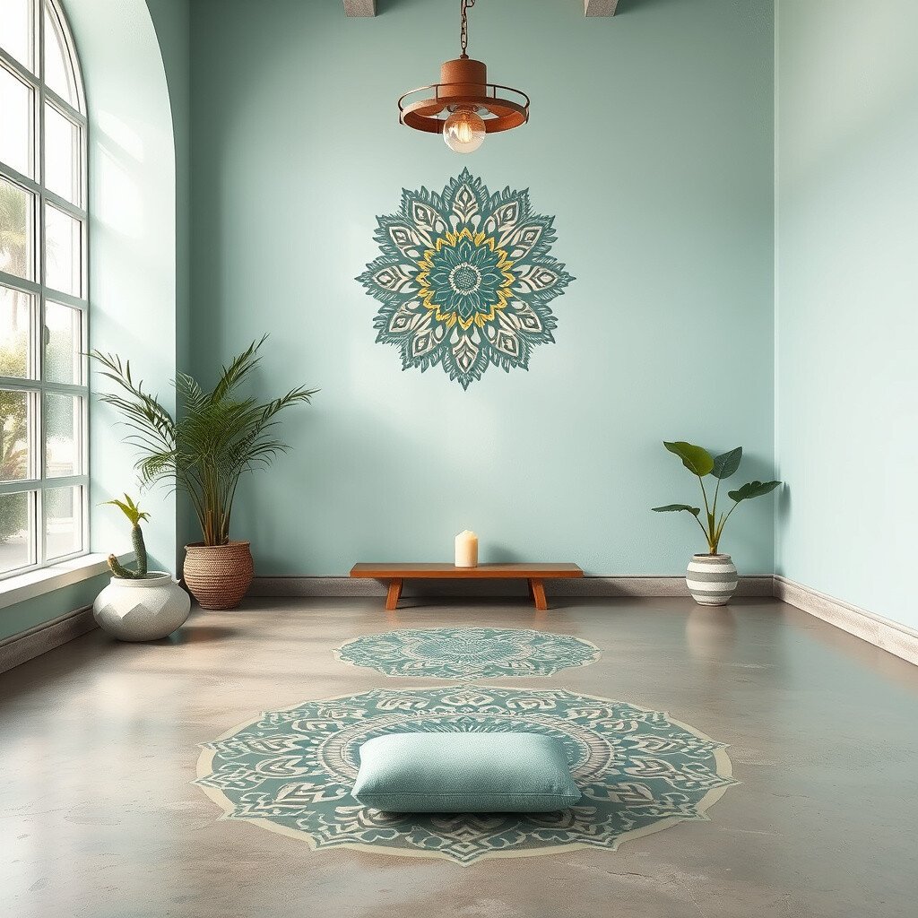 Create a serene meditation space with calming concrete floor paint. Soft colors like mint or pale blue can promote relaxation and focus.