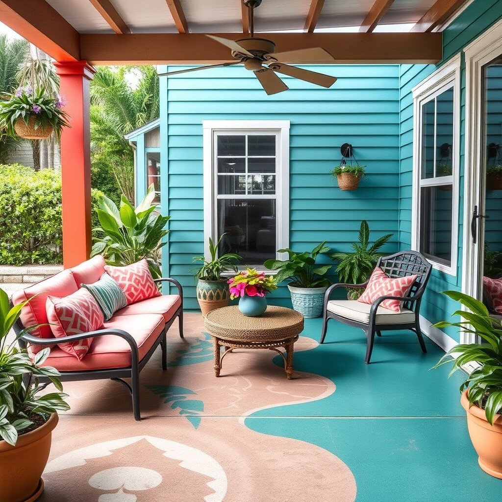 Bring your outdoor patio to life with concrete floor paint. Bright colors like turquoise or coral can create a tropical oasis in your backyard.
