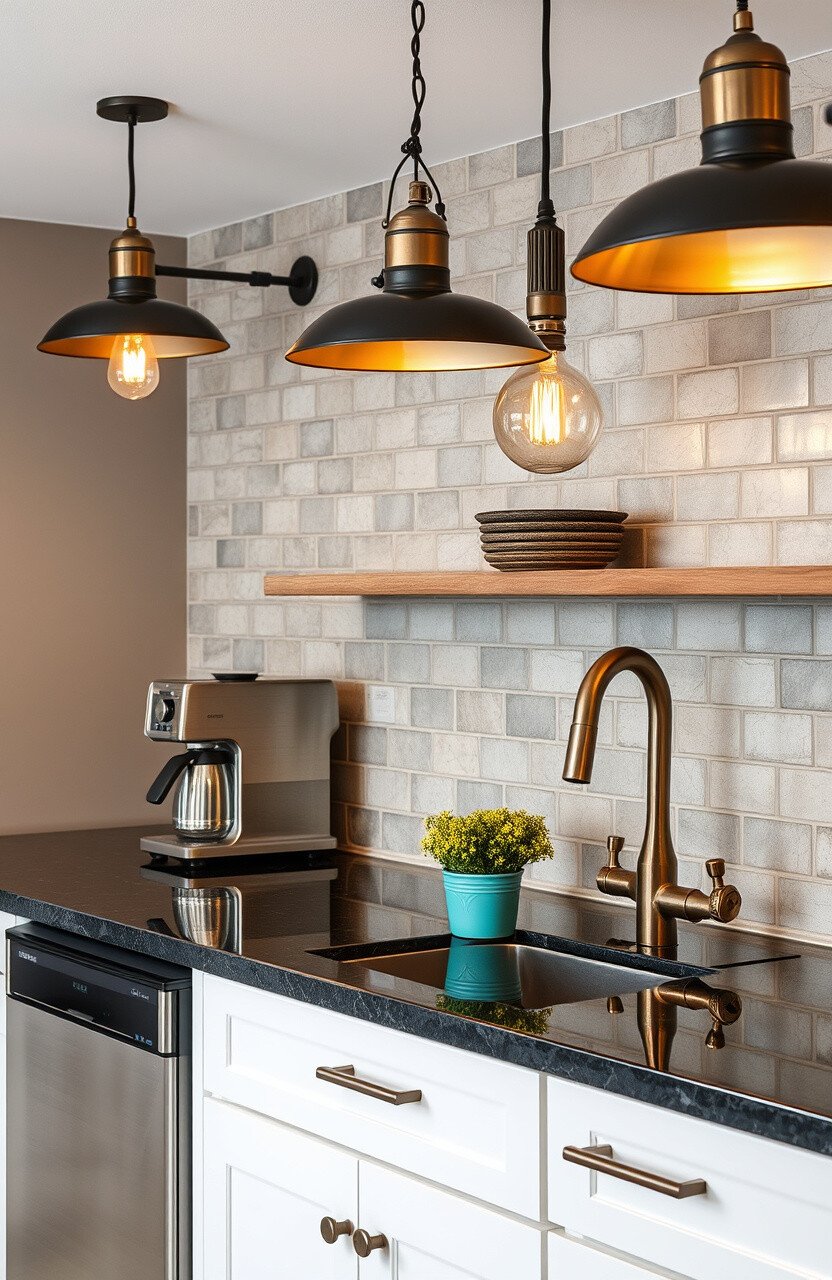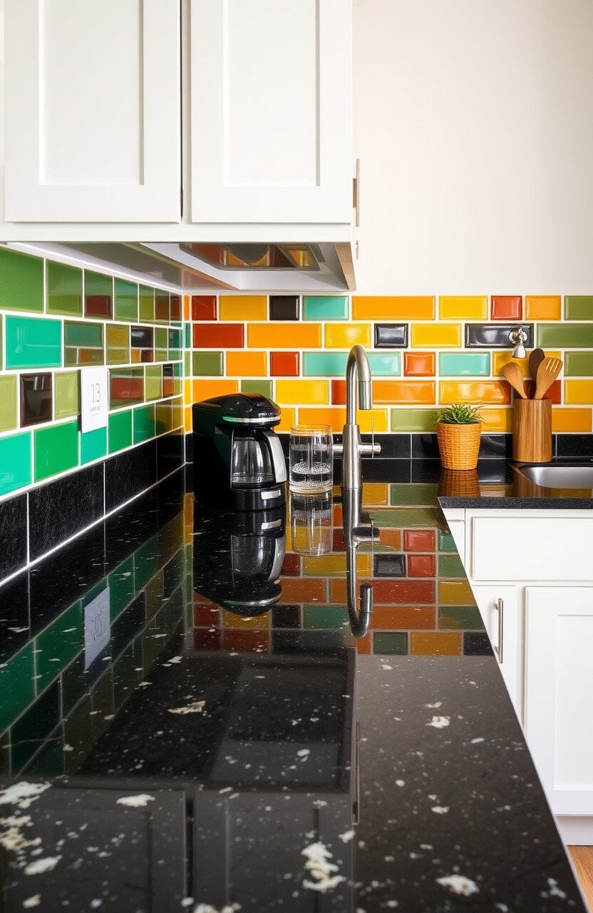 A bright backsplash makes your station pop. It contrasts with black granite.