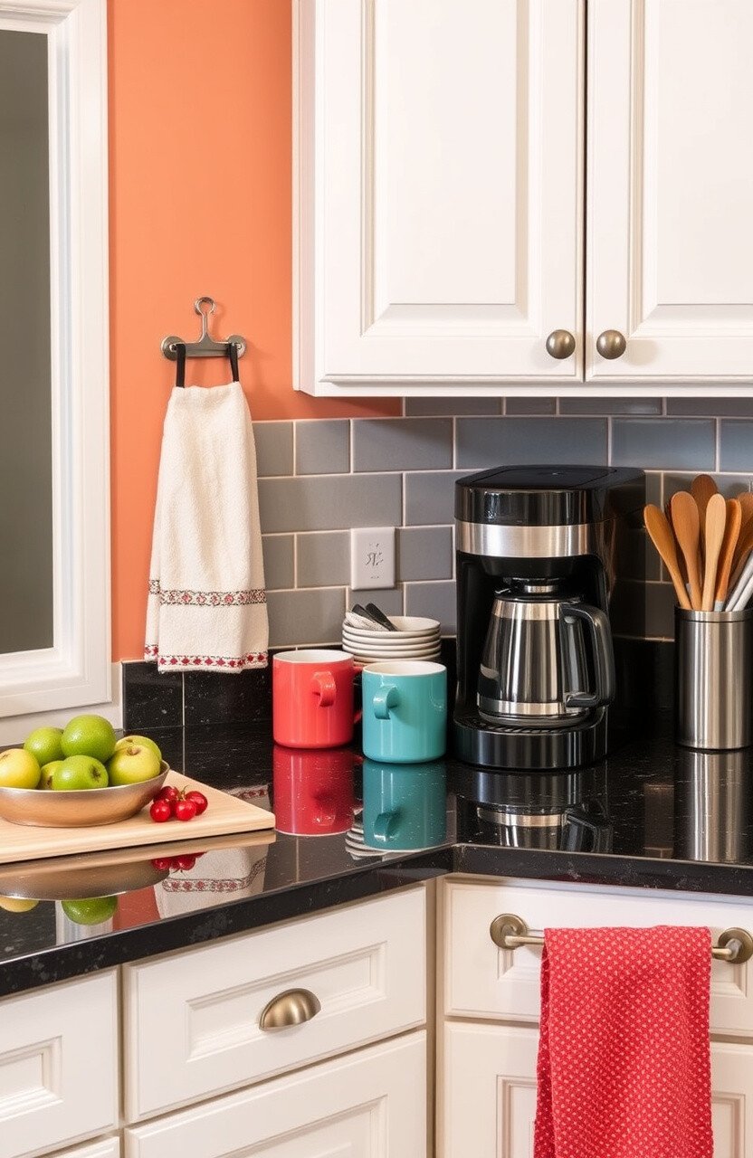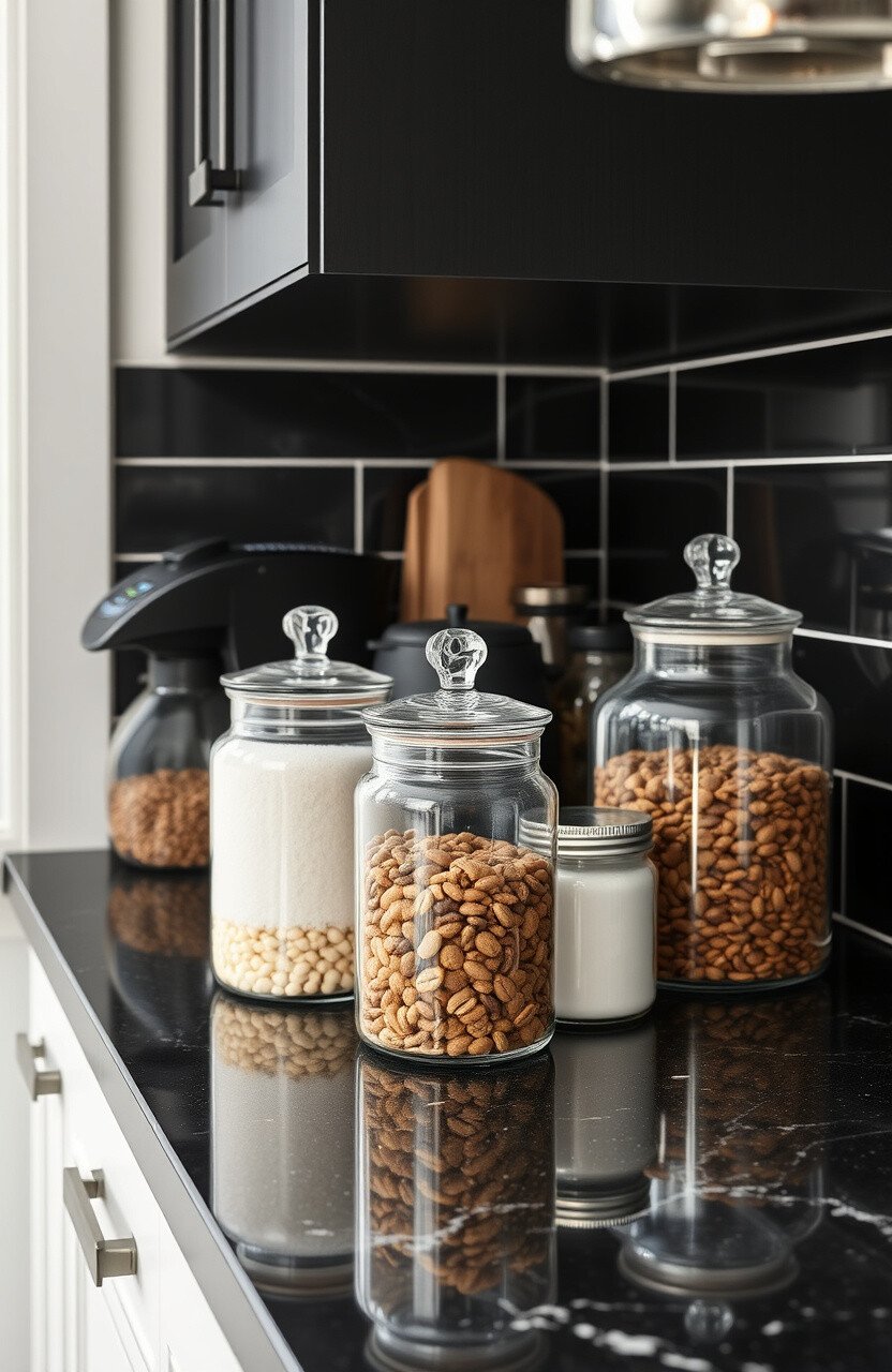 Old-fashioned canisters add charm to your station. They look beautiful against black granite.