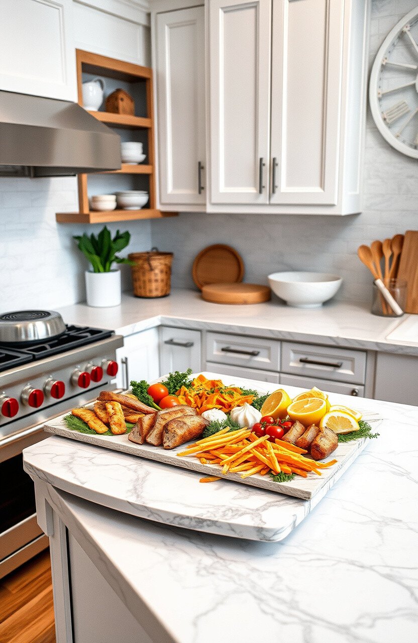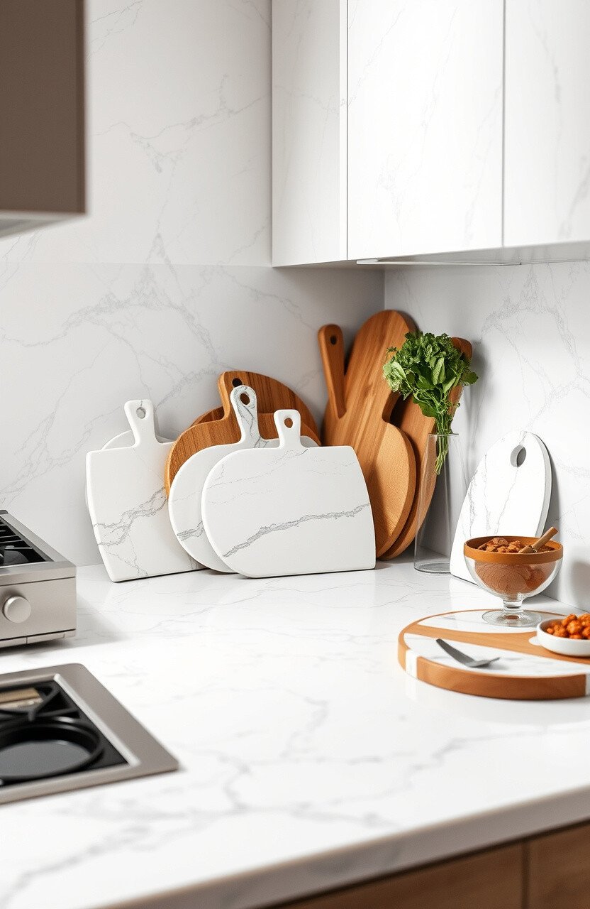 Enhance the elegance with marble cutting boards. They blend seamlessly with the countertop.