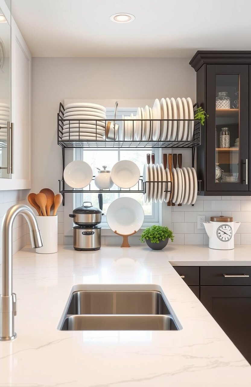 Organize your utensils with an artistic rack. It’s both practical and decorative.