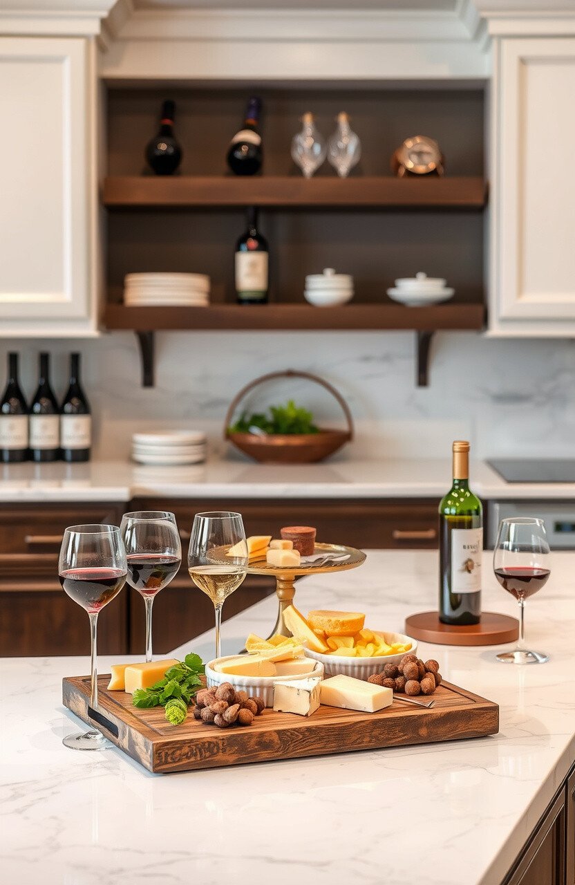 Create a gourmet experience with a wine and cheese station. It’s ideal for hosting friends.