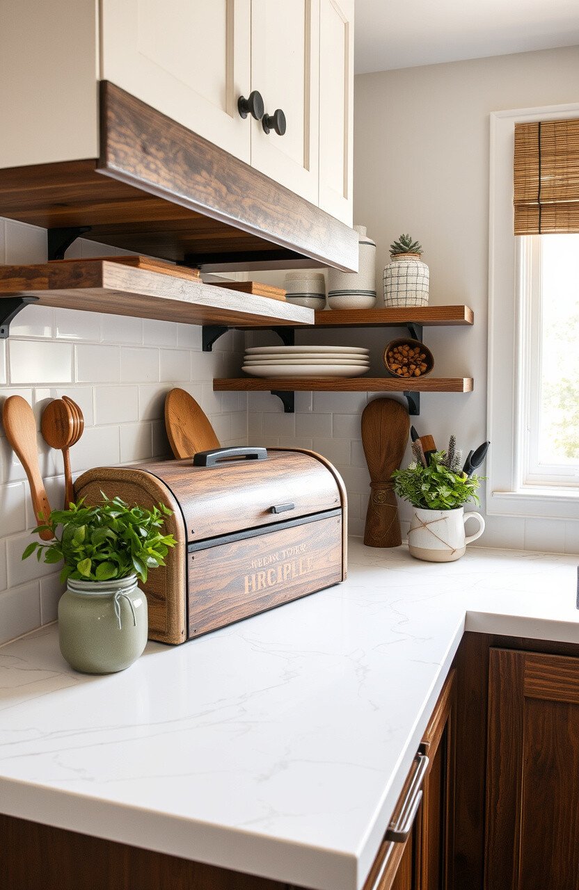 Keep your bread fresh with a rustic bread box. It’s both functional and charming.