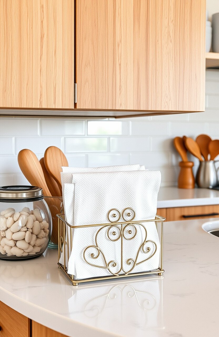 Organize your napkins with a customized holder. It’s both practical and decorative.