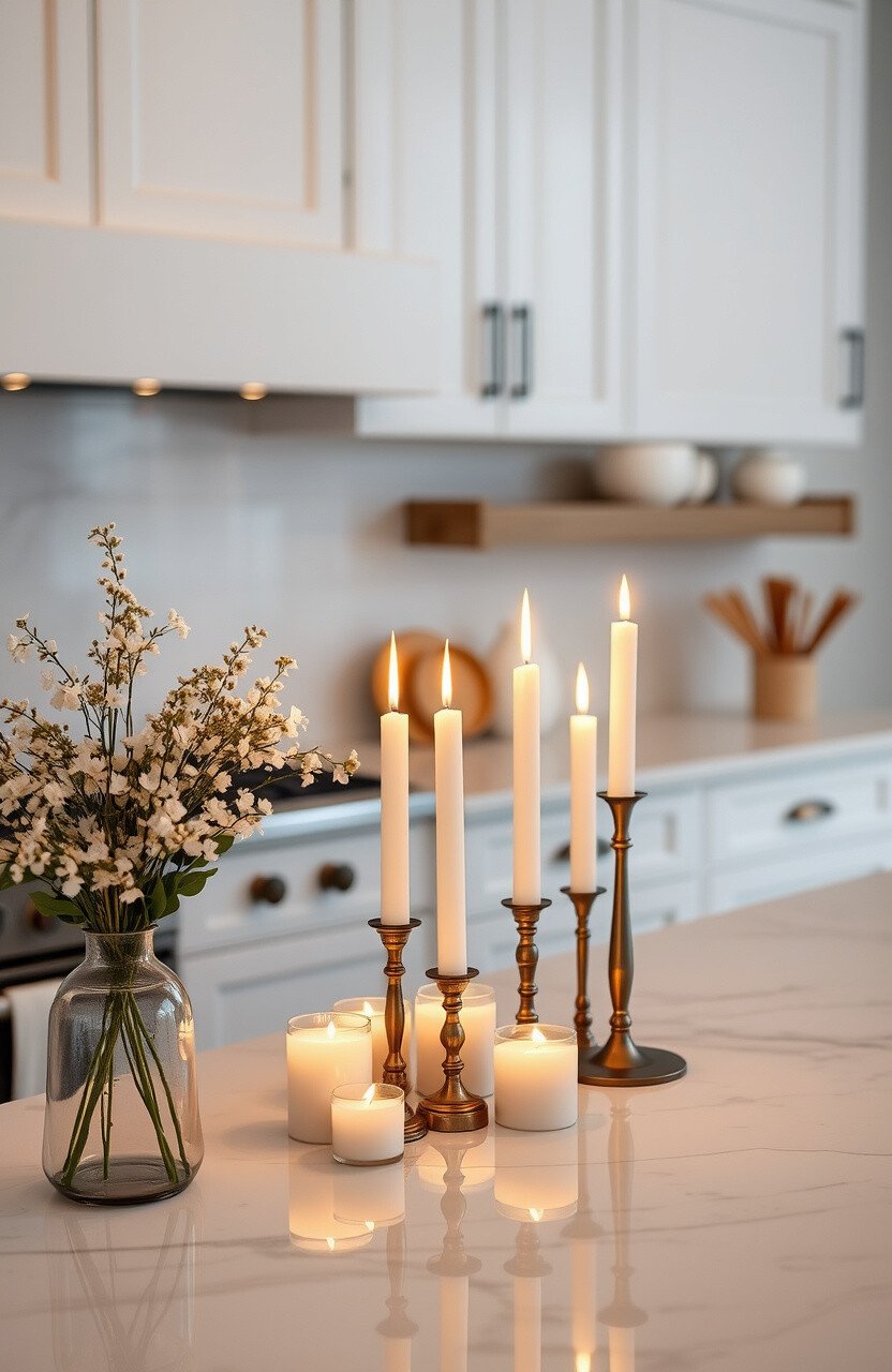 Choose candles in varying heights and scents. It’s a simple way to elevate your kitchen.