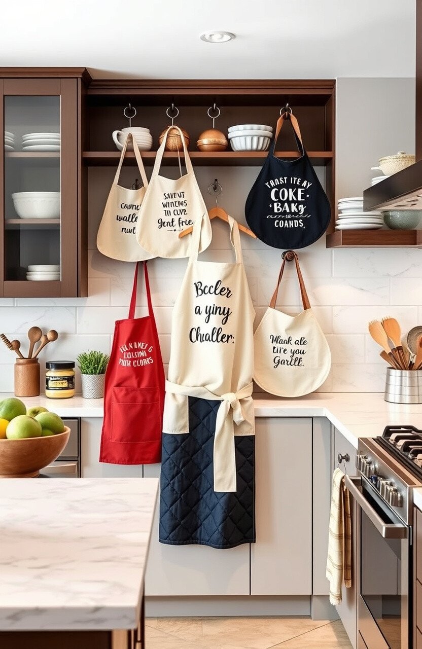 Display your apron collection for a personal touch. They’re both functional and decorative.