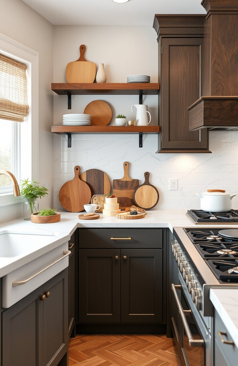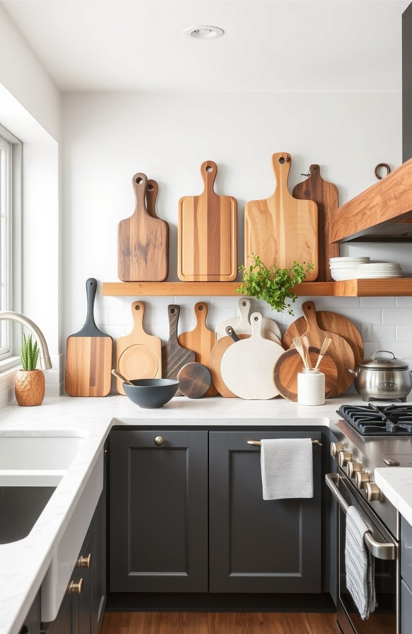 Showcase your collection with a decorative cutting board display. It’s both practical and stylish.