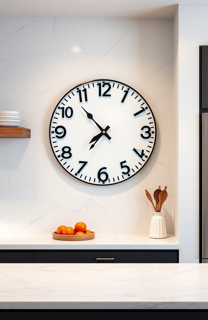 Add a unique touch with an artistic wall clock. It’s both functional and decorative.