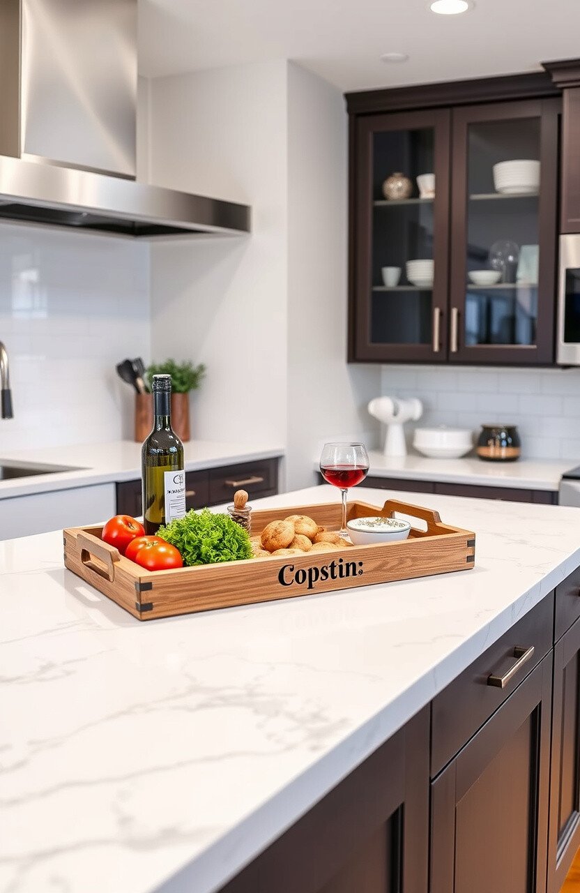 Add sophistication with a decorative tray display. It’s both functional and stylish.