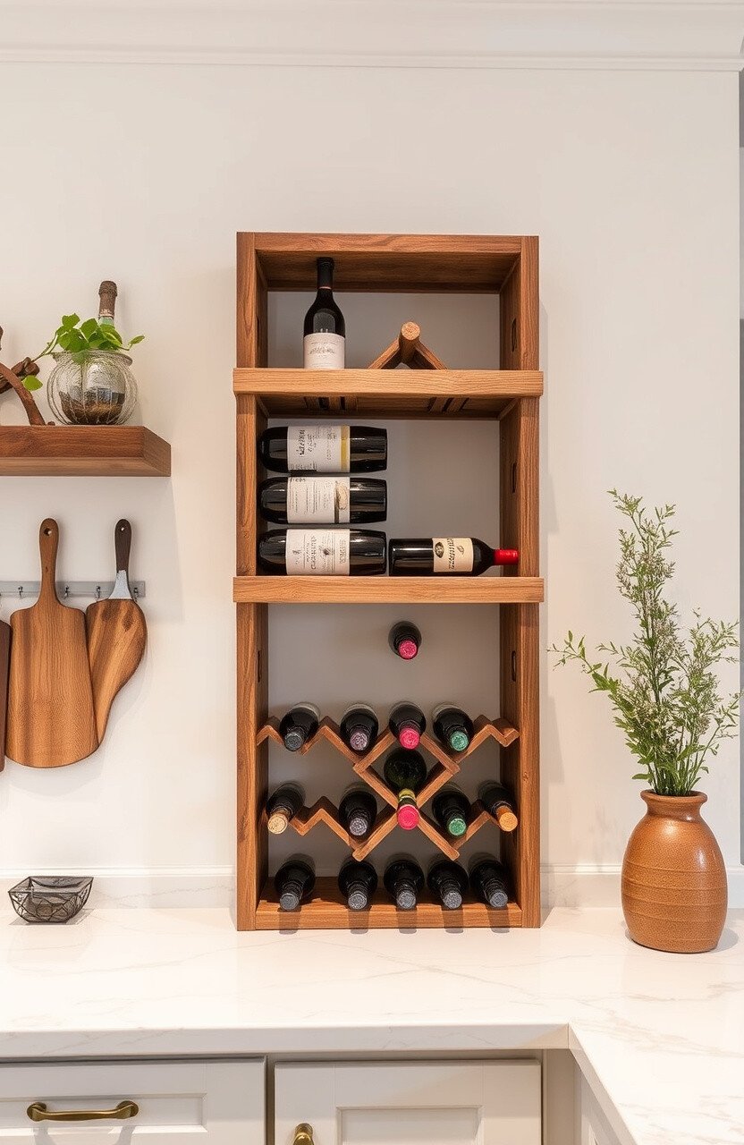 Store your favorite wines with a rustic wine rack. It’s both functional and charming.