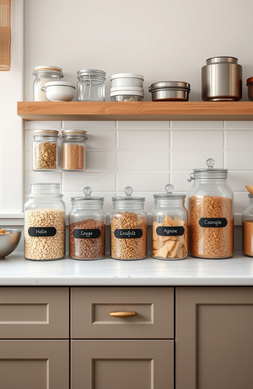 Label jars for a personalized touch. It brings order and style to your countertop.