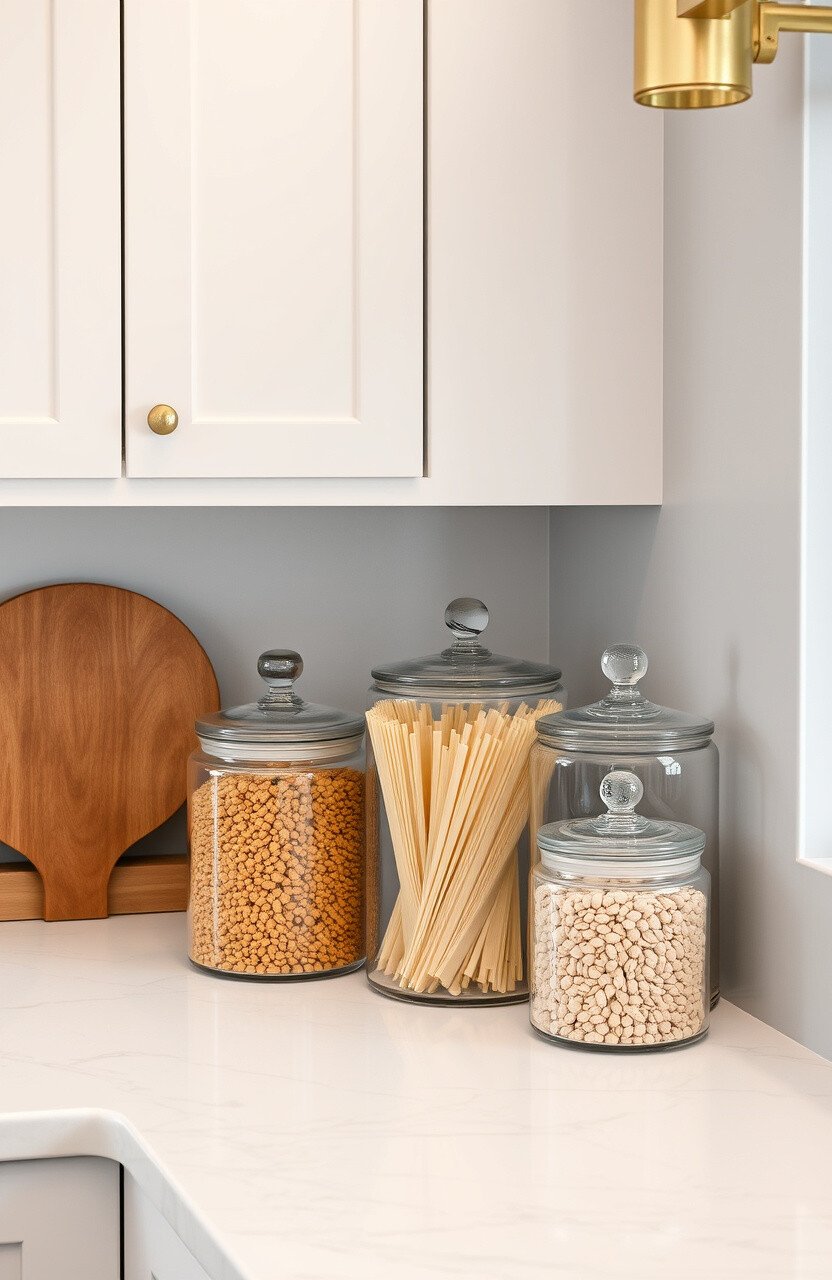 Store essentials in elegant glass canisters. They’re both practical and decorative.