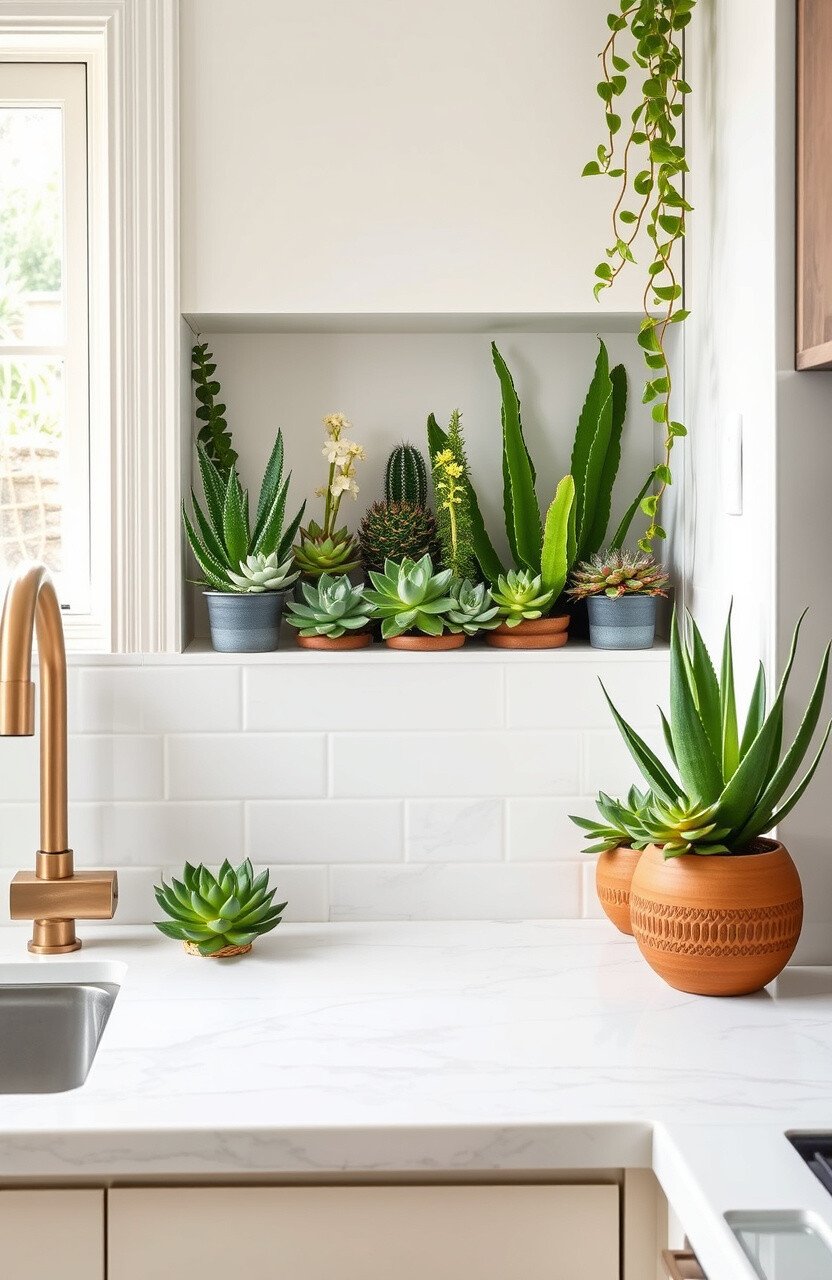 Mix different types of succulents for diversity. They’re a delightful addition to any kitchen.