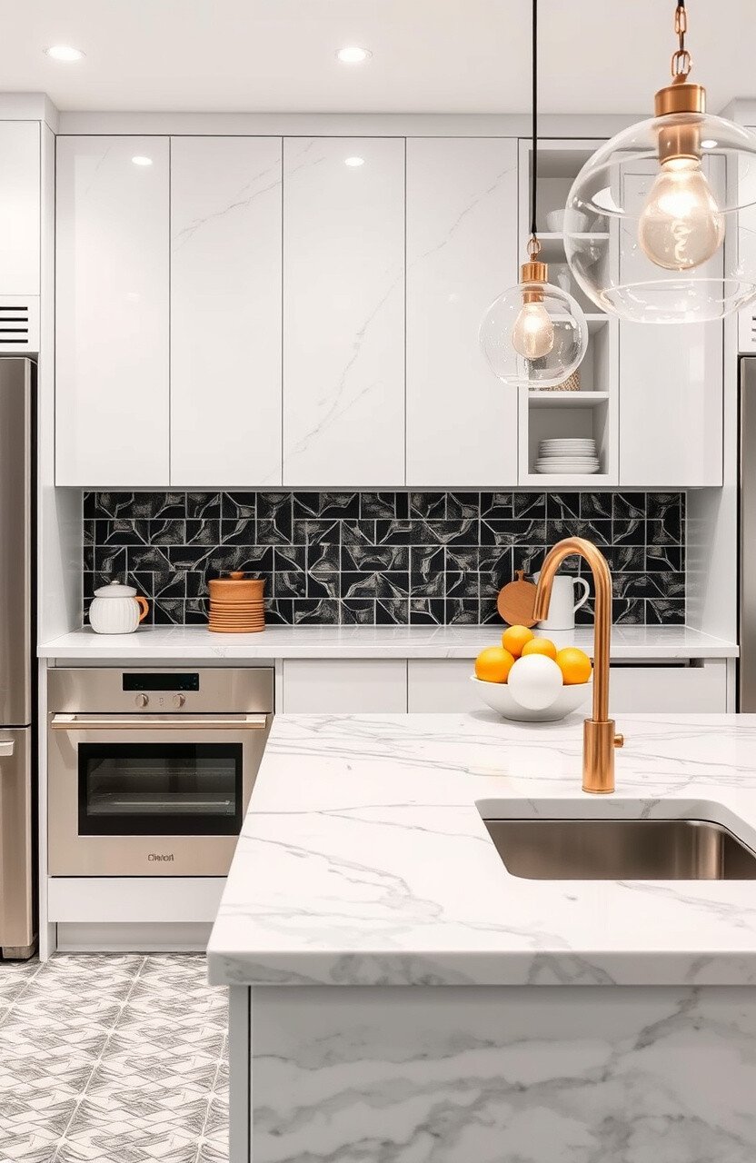 Add a bold backsplash to complement your marble countertops. It’s a great way to add color and personality.