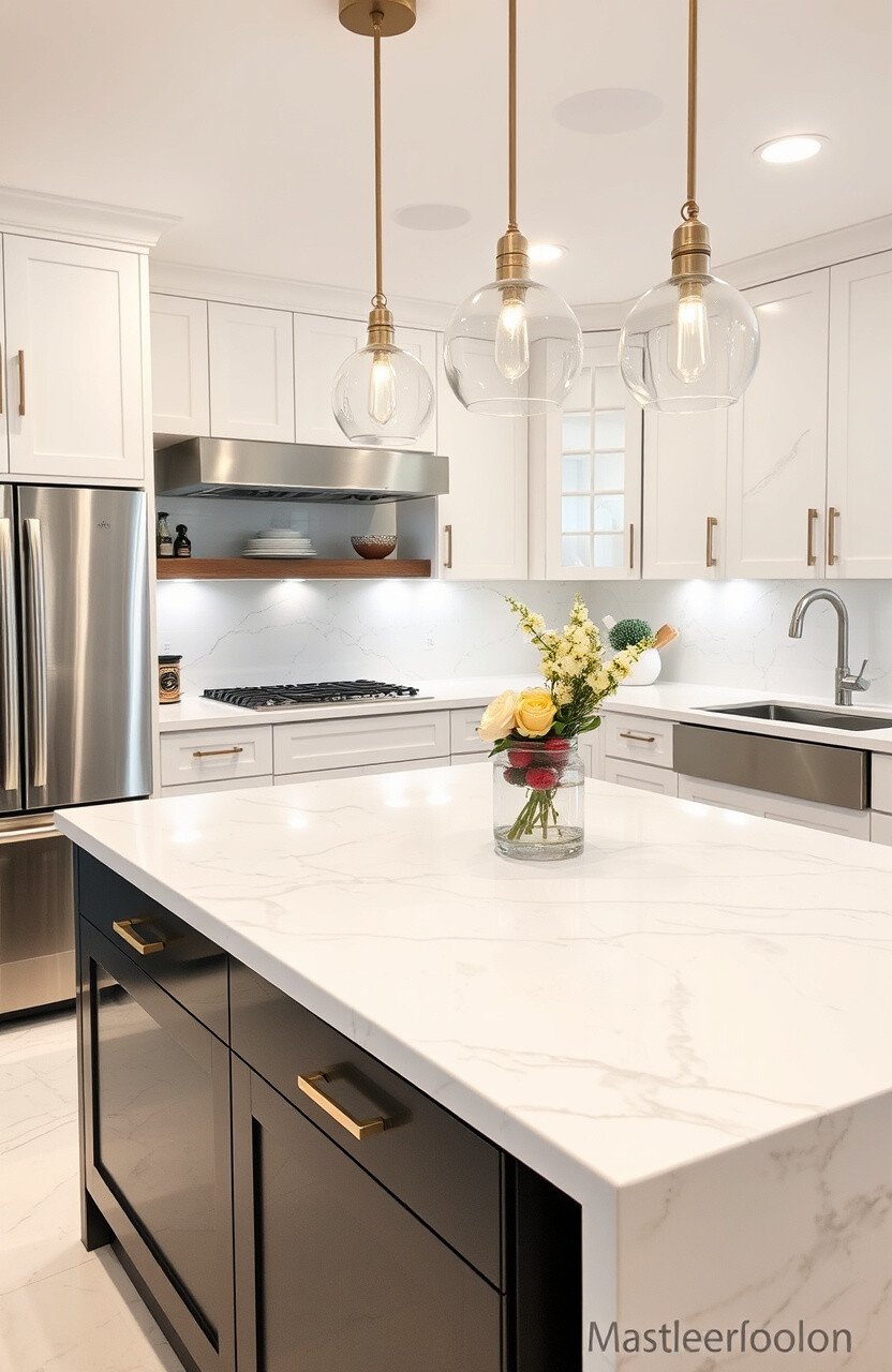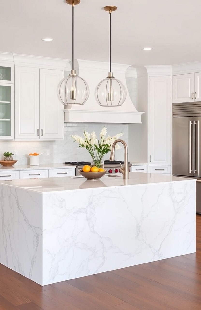 Make your kitchen island the centerpiece with a marble countertop. It draws attention and creates a stunning focal point.