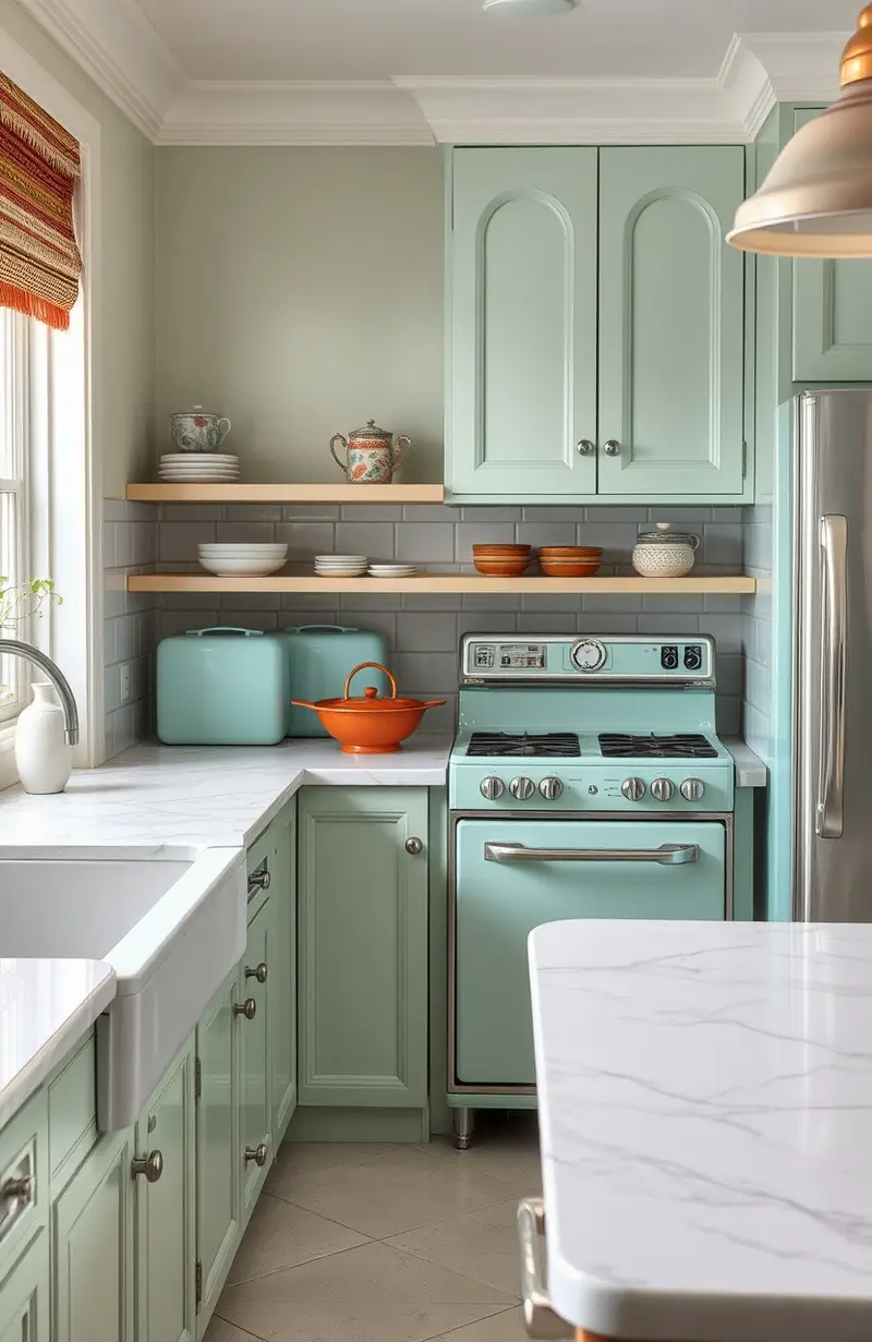 Use pastel colors or chrome finishes to enhance the retro vibe. It’s about creating a kitchen filled with character.