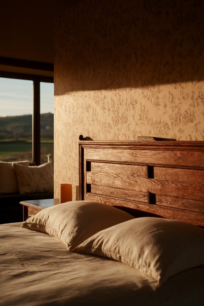 A wooden headboard can be the focal point of your country bedroom. It adds warmth and texture, creating a cozy atmosphere.