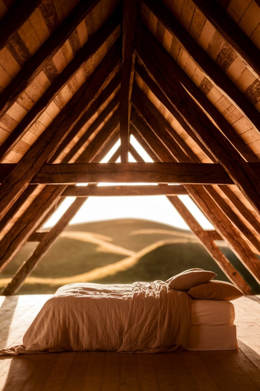 Adding rustic wooden beams to your bedroom ceiling can create a warm, inviting vibe. These beams add a touch of historical charm, making your room feel like a cozy cabin.