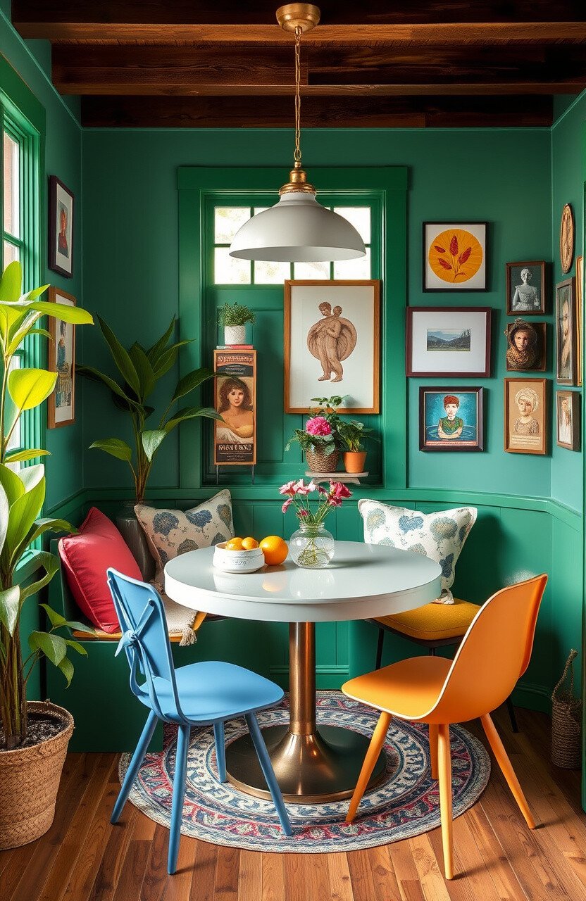Mix and match styles and eras for an eclectic, vibrant nook. It’s a playful way to start your day.
