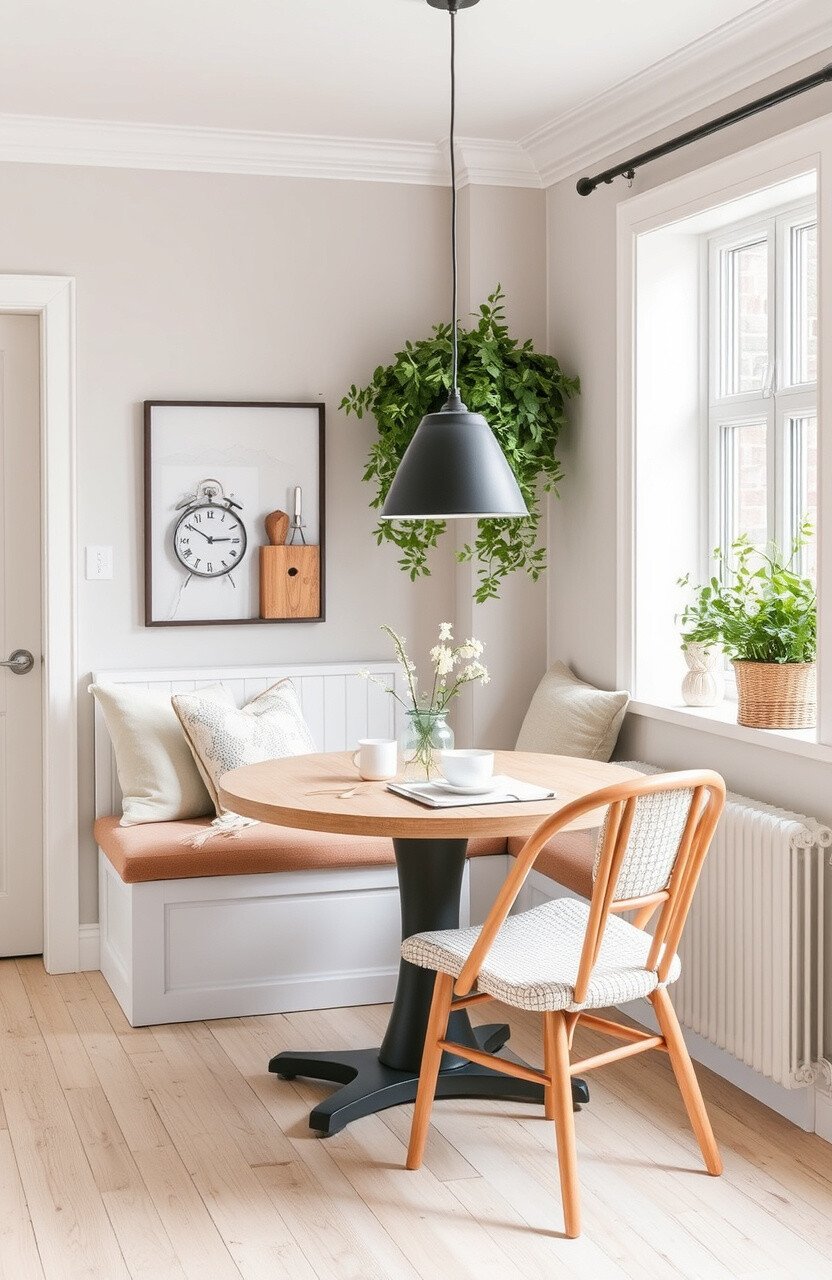 Combine Scandinavian simplicity with cozy elements for a comfortable nook. It’s a warm, inviting start to your day.