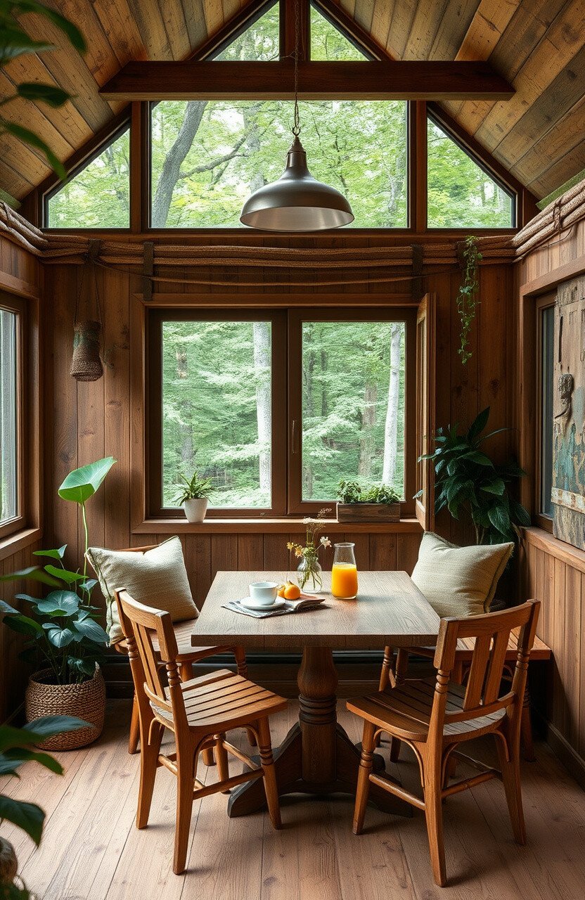 Bring the outdoors in with natural wood and earthy tones. It’s like having breakfast in a forest cabin.