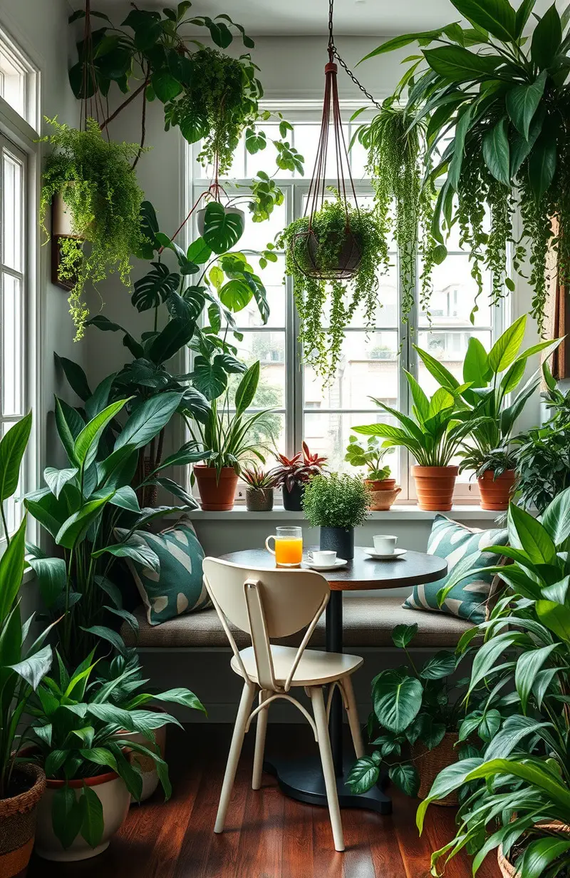 Fill your nook with plants for a lush, urban jungle vibe. It’s like having breakfast in a rainforest!