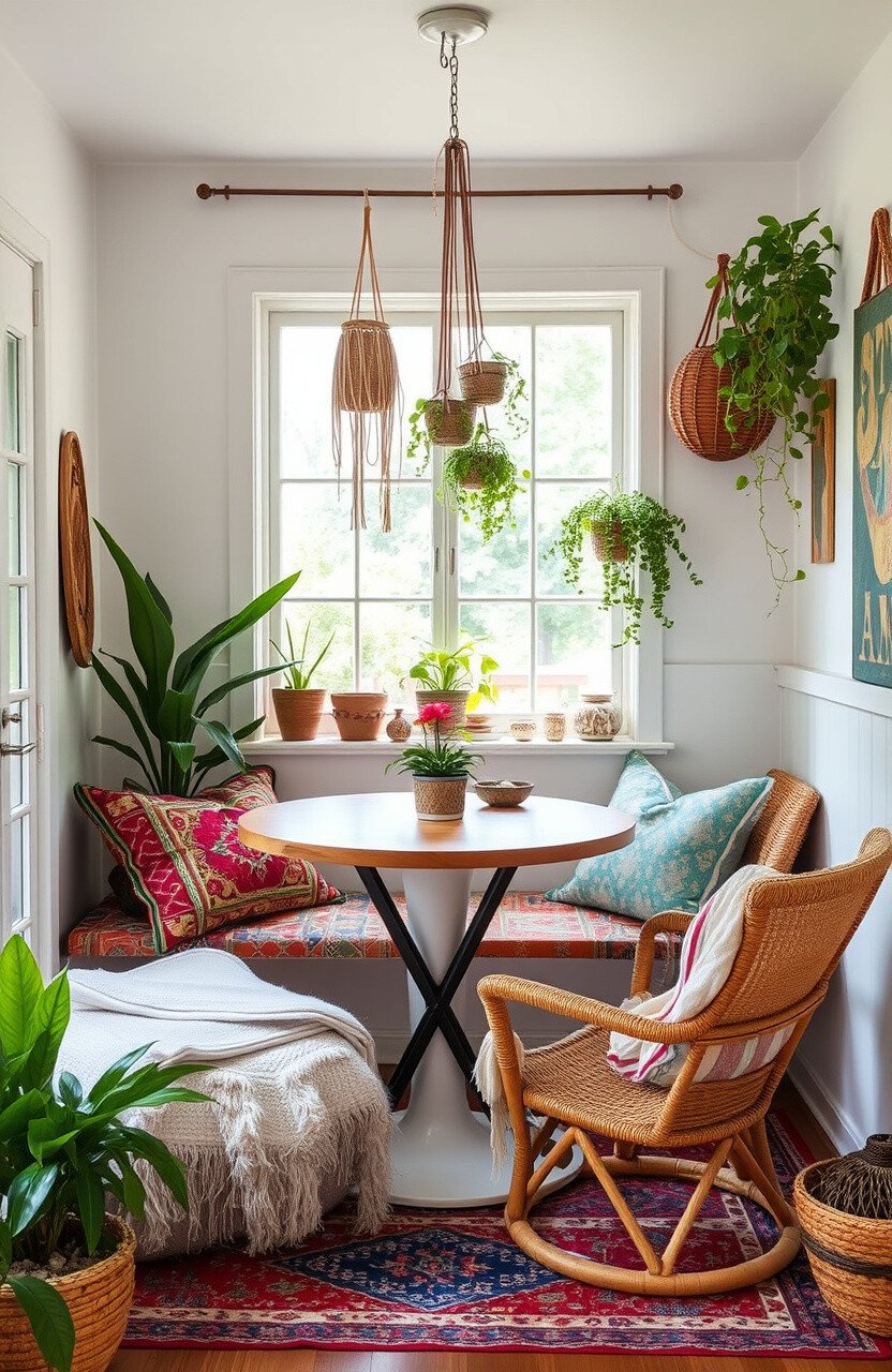 Mix bohemian and artistic elements for a creative nook. It’s a colorful, expressive way to start your day.