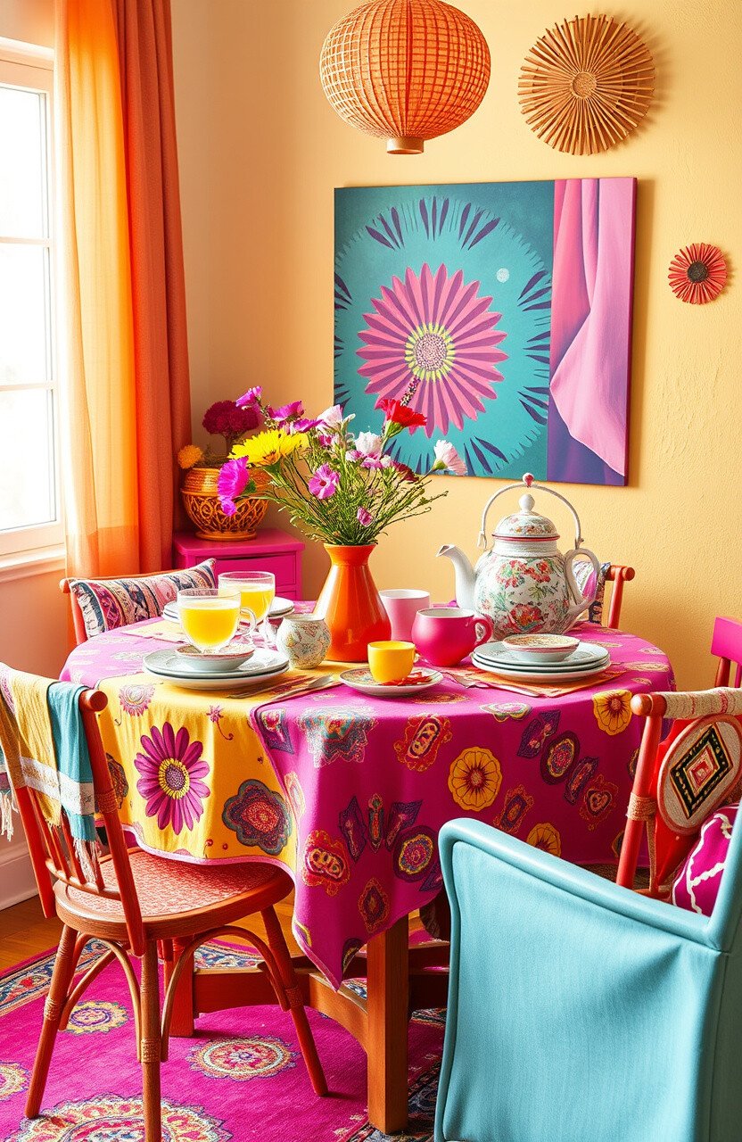 Add some fun to breakfast with a retro pop setup. Use bright colors and bold patterns.