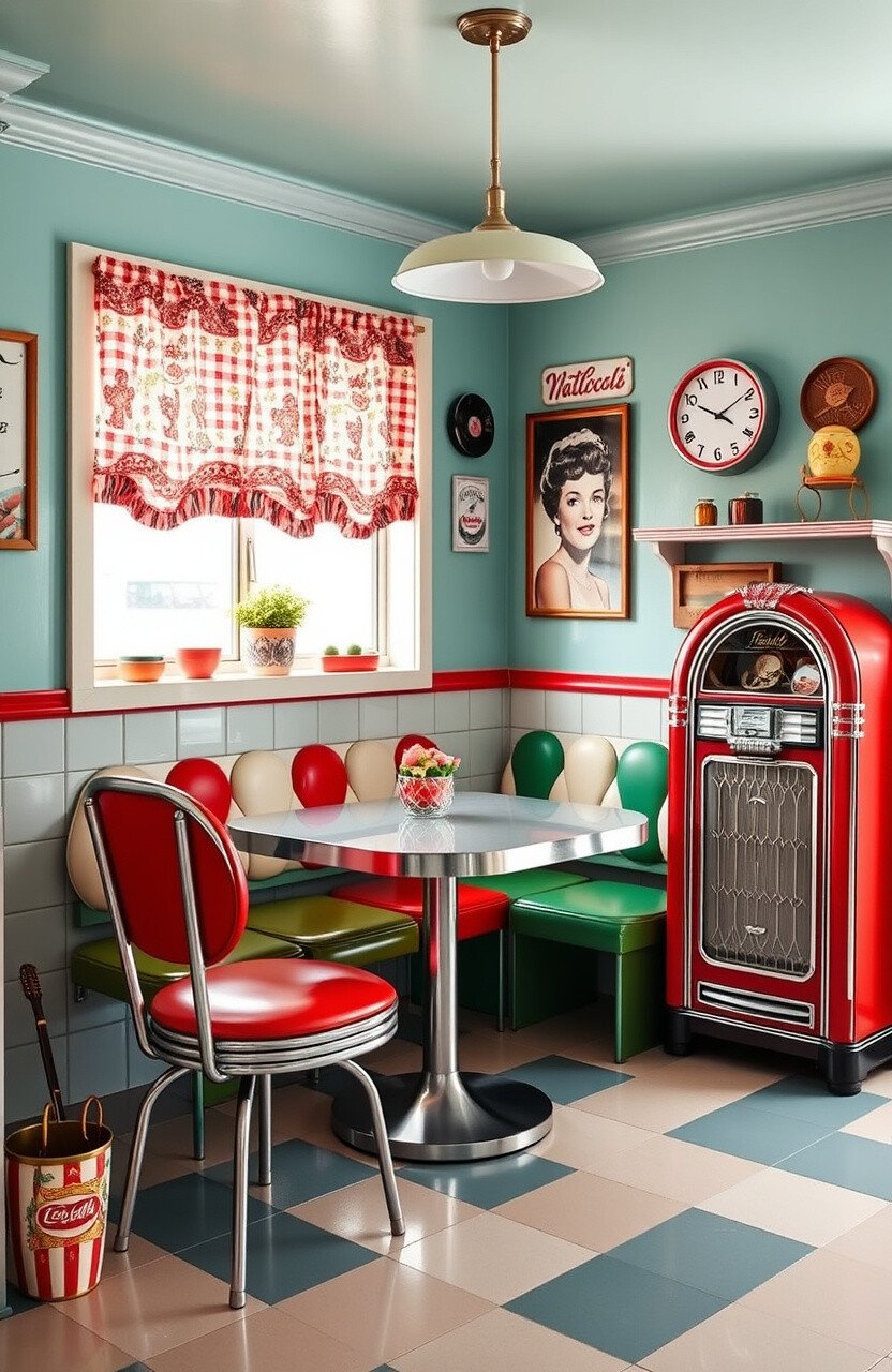 Step back in time with a vintage-inspired breakfast nook. Antique furniture and retro decor create a charming, nostalgic space.