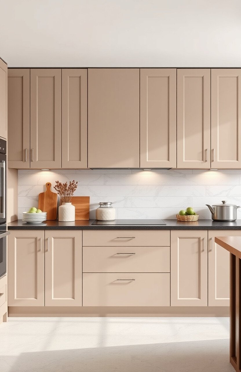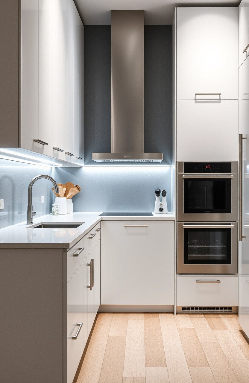 Opt for handle-less doors for an ultra-modern feel. Neutral colors like gray or beige are popular choices.