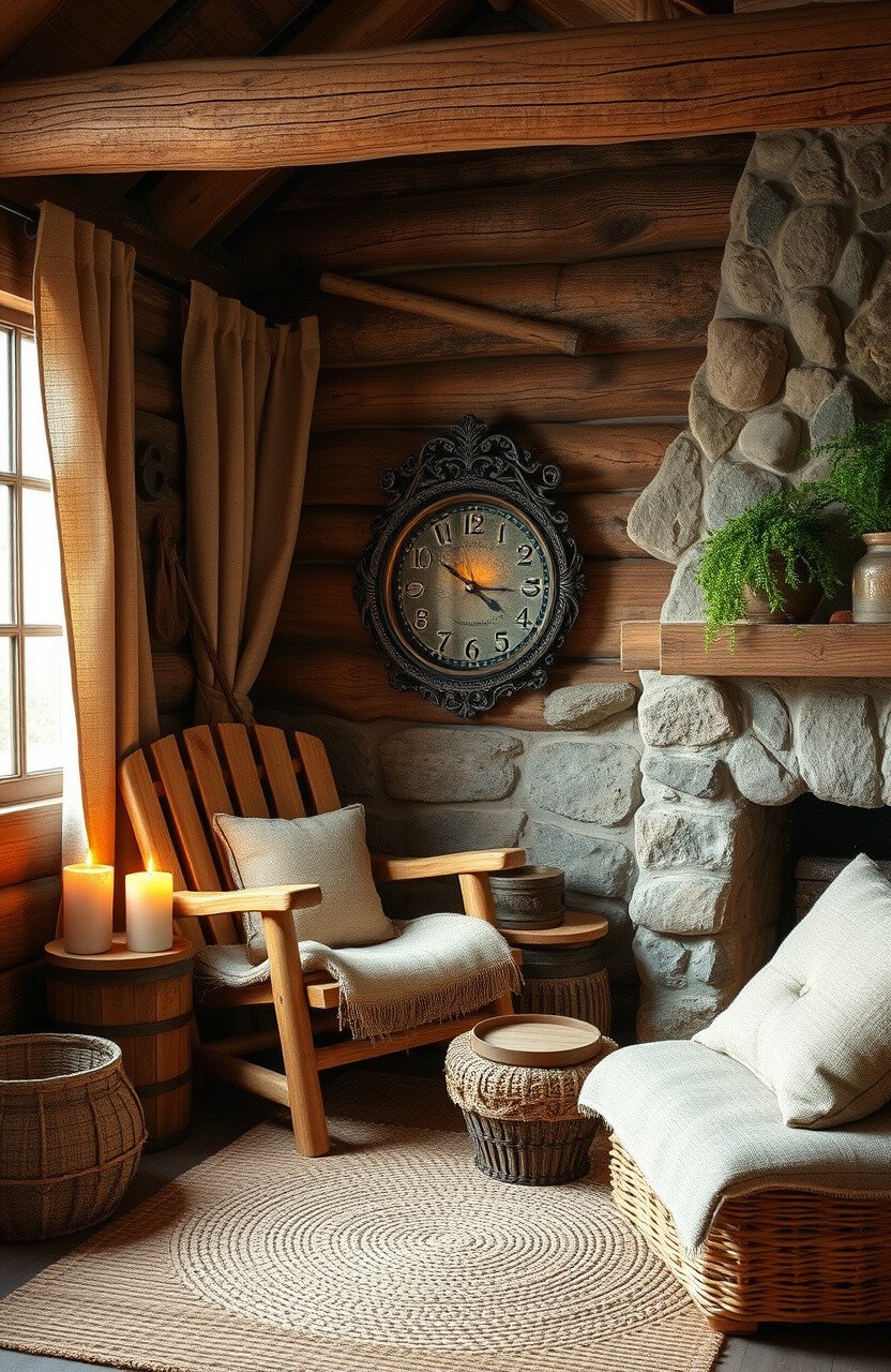 A cozy cabin feel corner is great for those who love warm, woodsy spaces. It’s like having a log cabin retreat in your home.