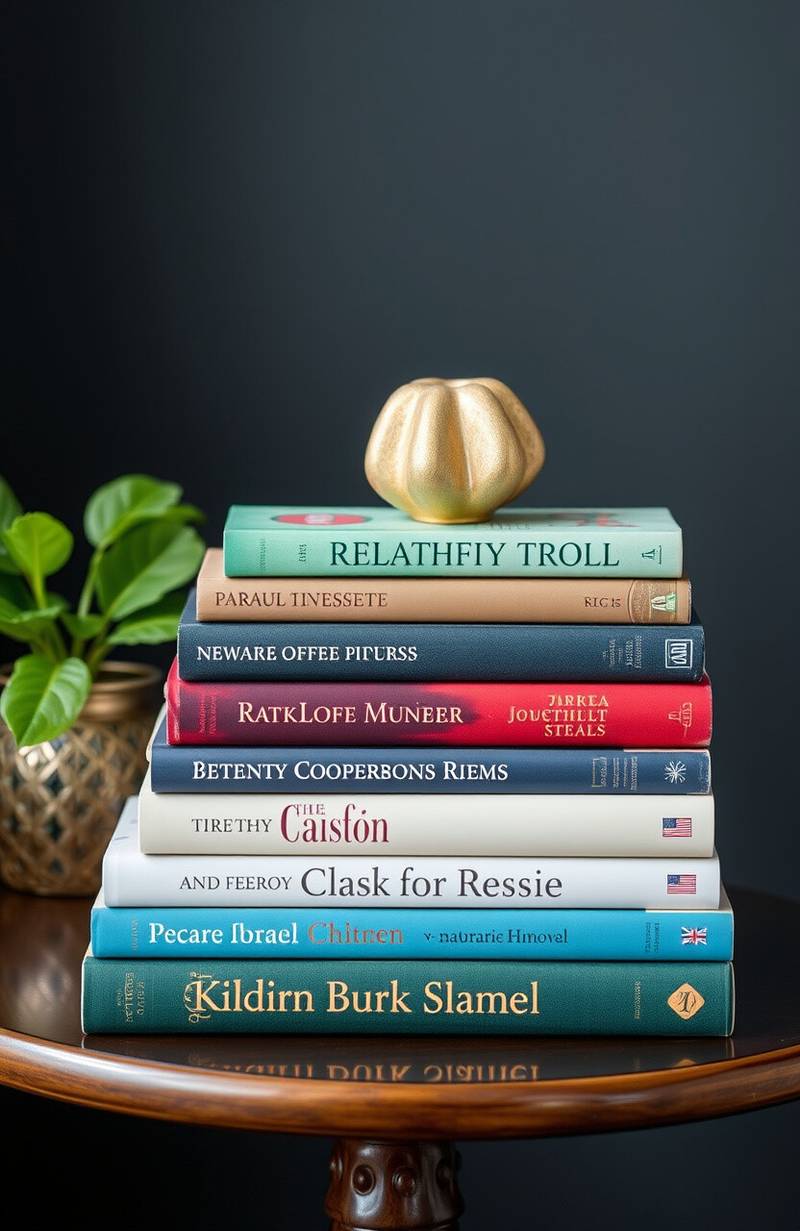 Consider adding a small decorative object on top of the stack. It ties the display together beautifully.