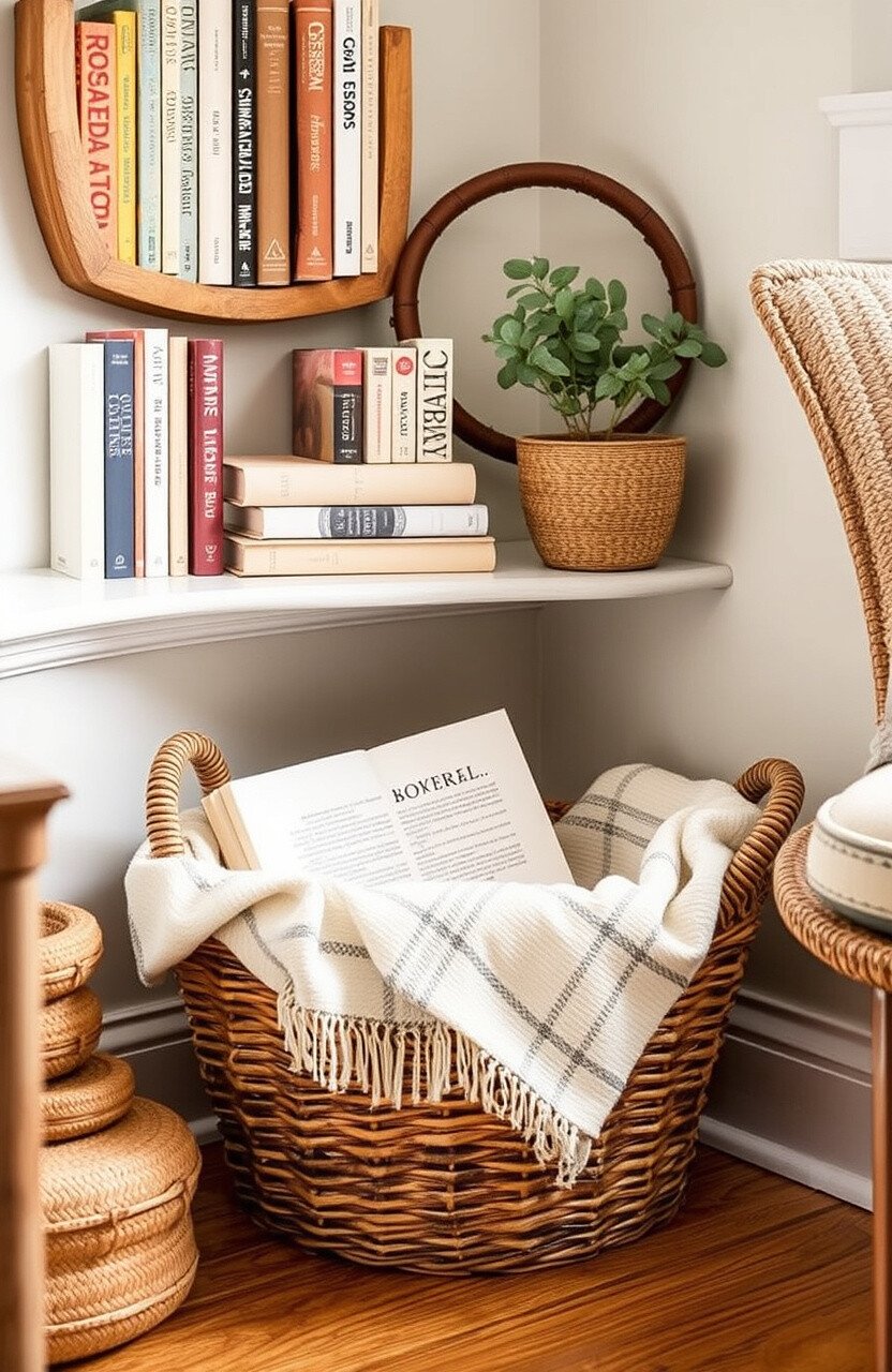 A basket is a great way to store books in your reading nook. It keeps them organized and within reach.