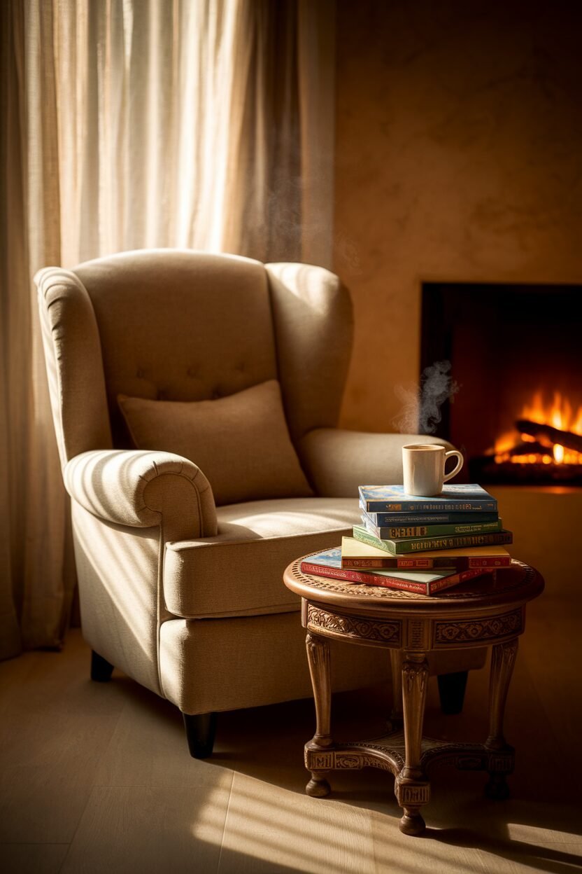 Try placing a comfy armchair or a floor cushion next to a window for natural light. Adding a small side table for your tea or coffee can make it even cozier!