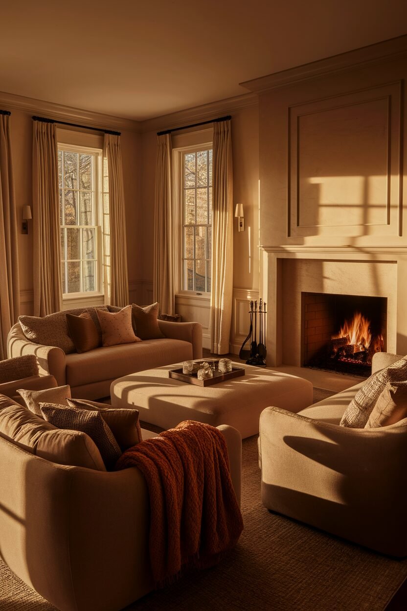Creating a seating area around a fireplace brings warmth and charm to your home. Just imagine cozying up with loved ones on chilly nights, surrounded by warmth.