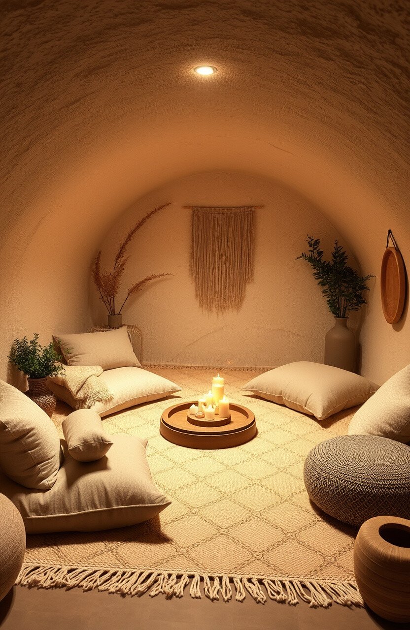A serene meditation space with soft cushions, calming scents, and gentle music can be your personal sanctuary. Use neutral colors and minimal decor for a peaceful vibe.