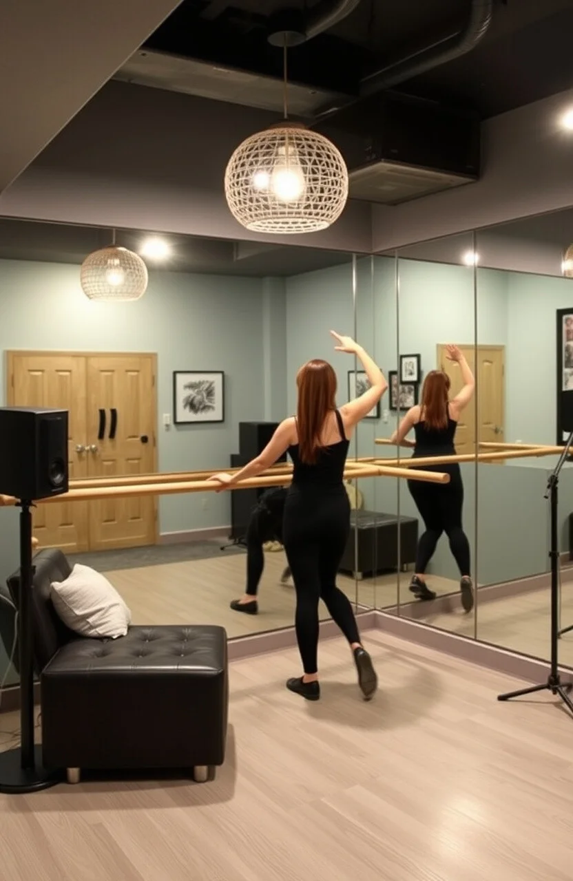 Create a personal dance studio with mirrored walls, a sound system, and a smooth floor for dancing. Add a barre for practicing ballet or other styles.