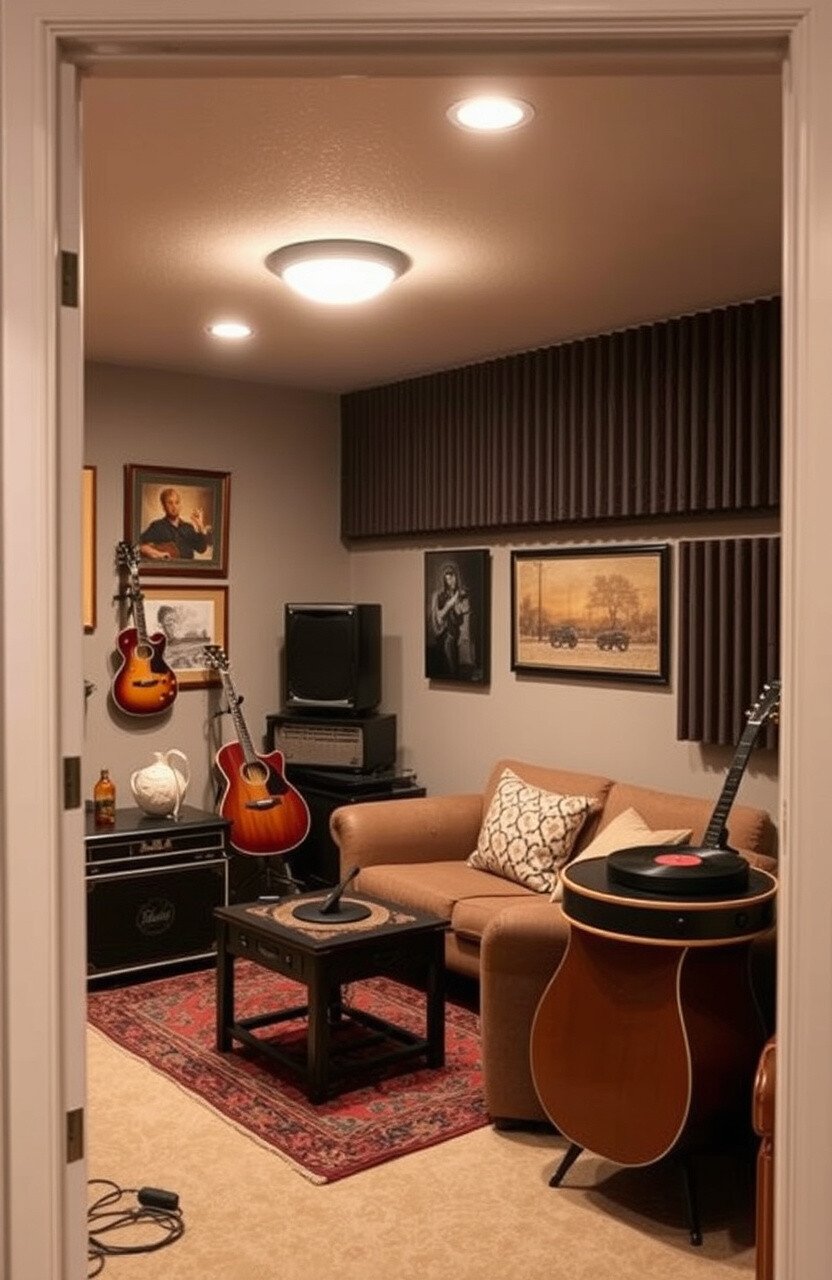 Create a music lover’s paradise with soundproofing, comfy seating, and your favorite instruments. Add a record player for a vintage touch.