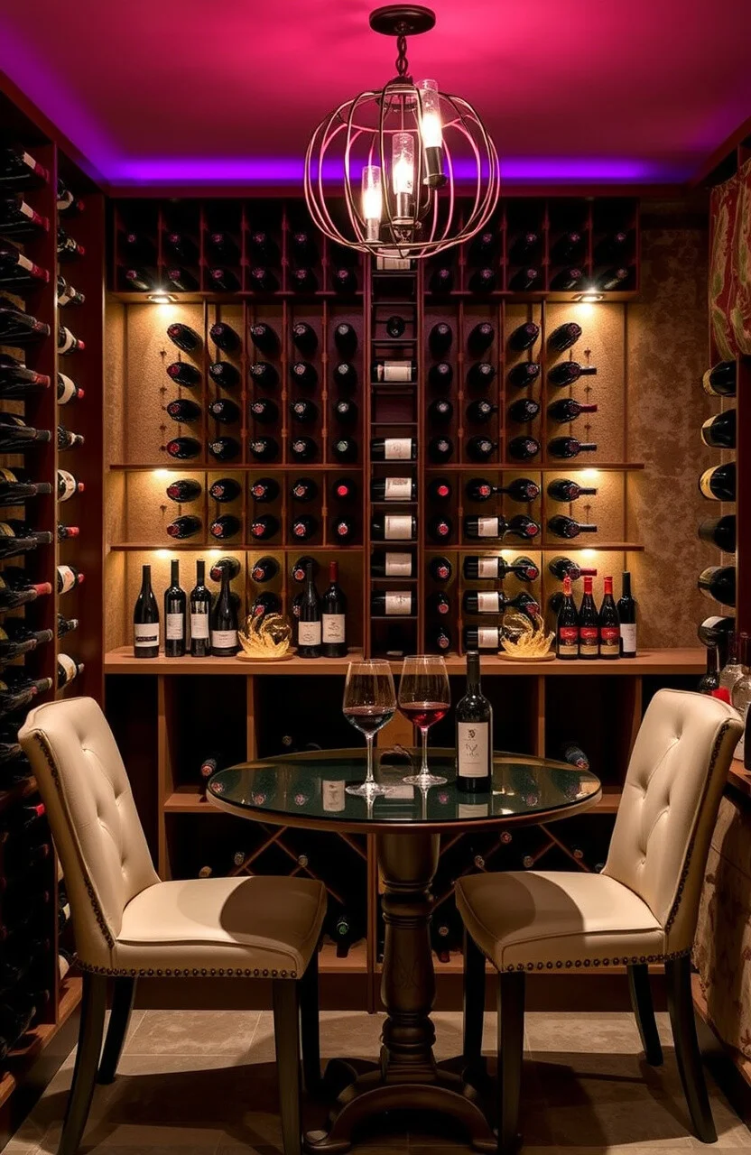 Create a stylish wine cellar with racks, a tasting table, and ambient lighting. Decorate with wine-themed art or vintage corkscrews.