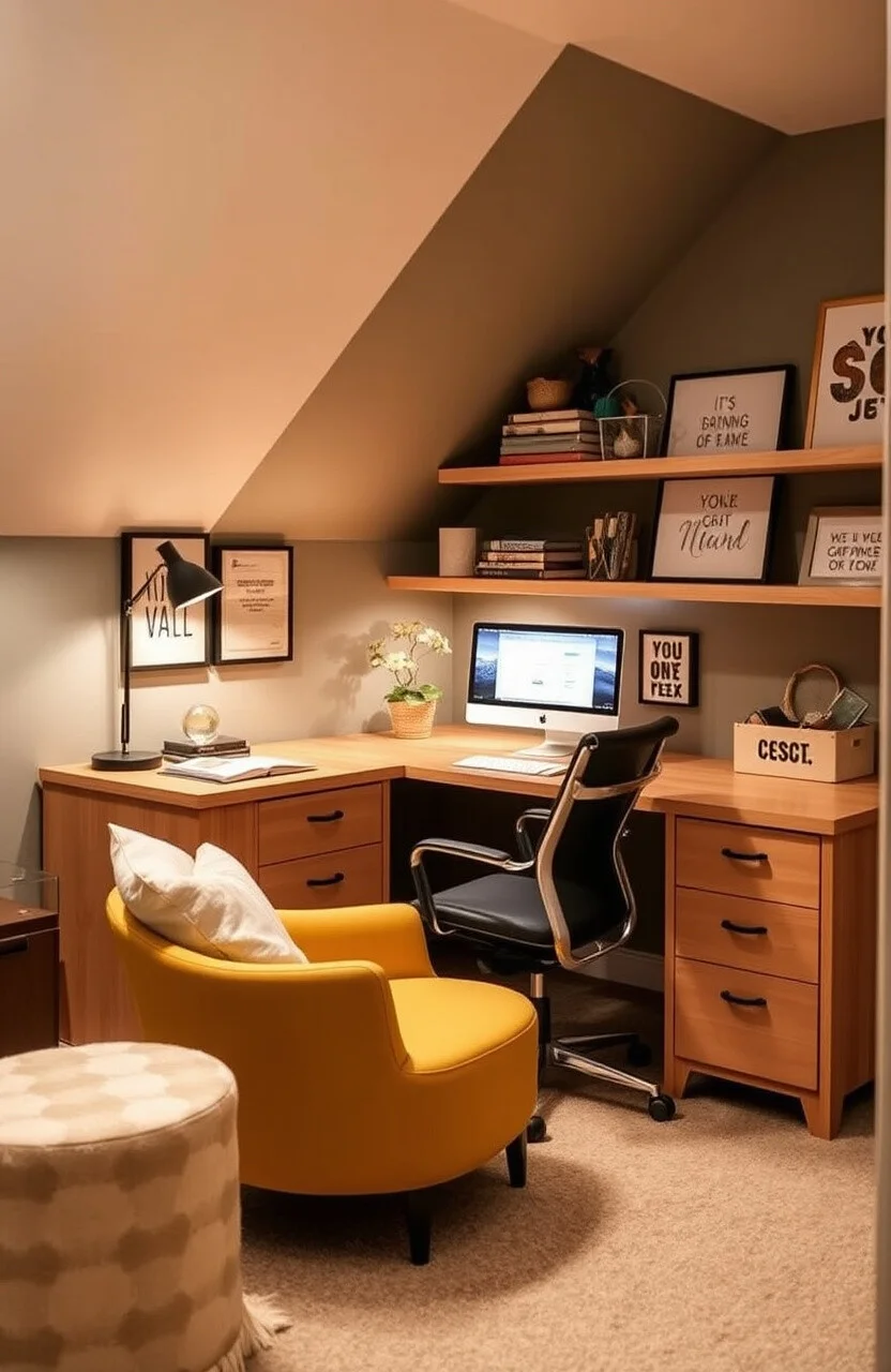 Design a home office that’s both functional and stylish with a sturdy desk, ergonomic chair, and plenty of storage. Use calming colors to enhance focus and productivity.