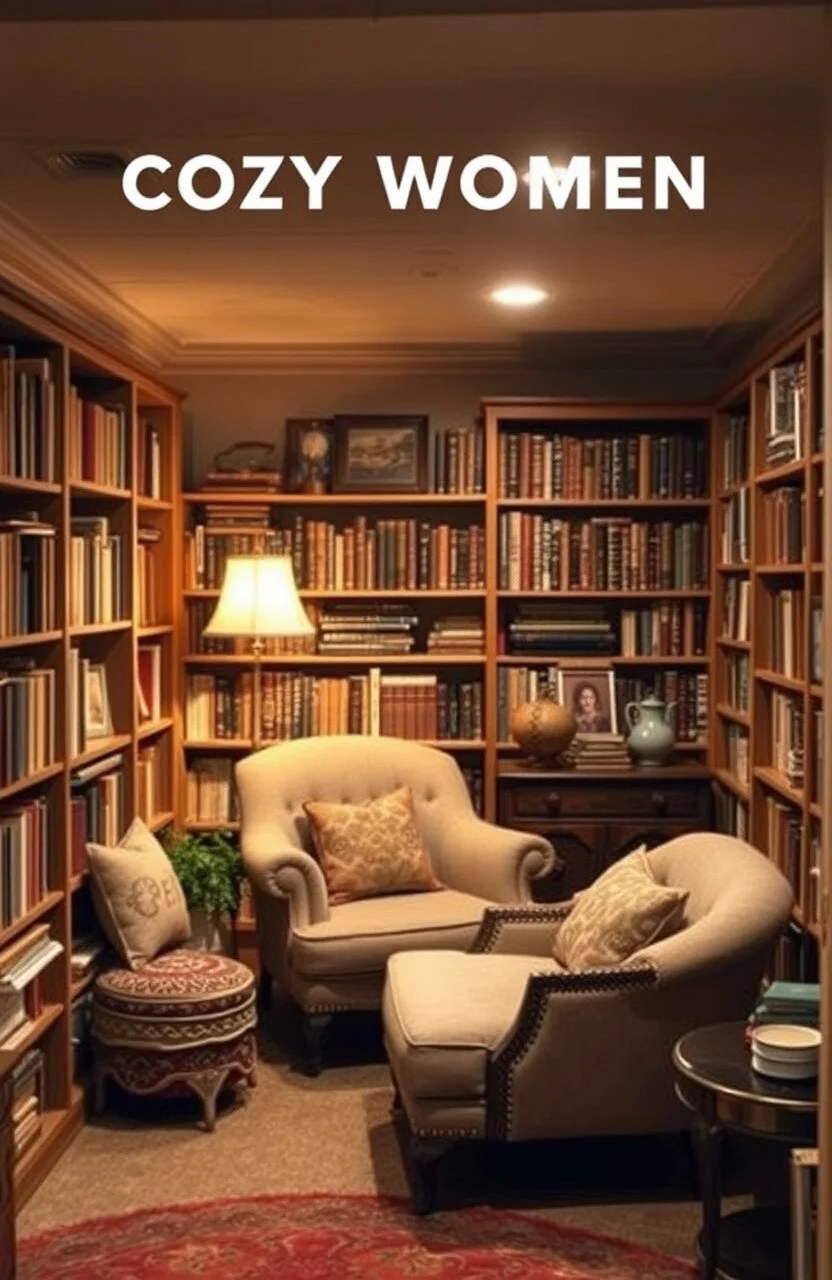 Imagine curling up with a good book in a cozy corner filled with vintage charm. A plush armchair, surrounded by bookshelves, and a soft, warm light create the perfect reading atmosphere. Add a small vintage table for your tea or coffee.