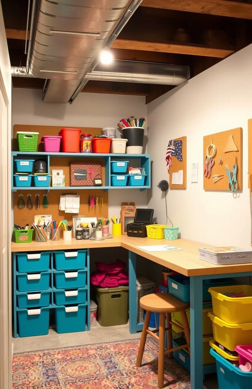 A crafting haven with a large workbench and ample storage for supplies can be a dream come true. Use colorful bins and labels for organization, and add a corkboard for inspiration.