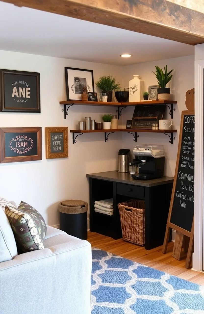 This space is perfect for starting your day right or enjoying a quiet moment. It’s budget-friendly and can be personalized with your coffee preferences. Add a chalkboard for a fun, café-style menu.