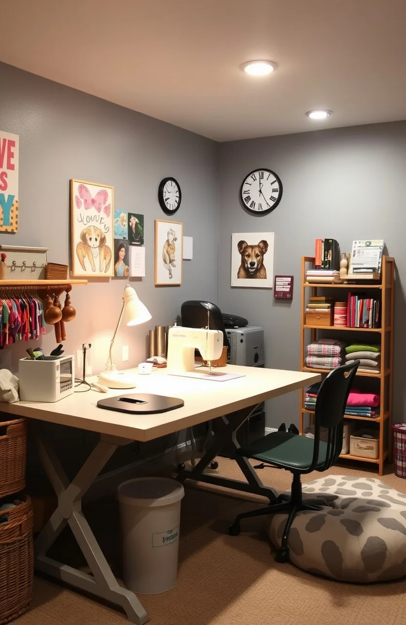 Set up a sewing paradise with a sturdy table, a sewing machine, and plenty of storage for fabric and supplies. Use bright lighting and inspirational decor.
