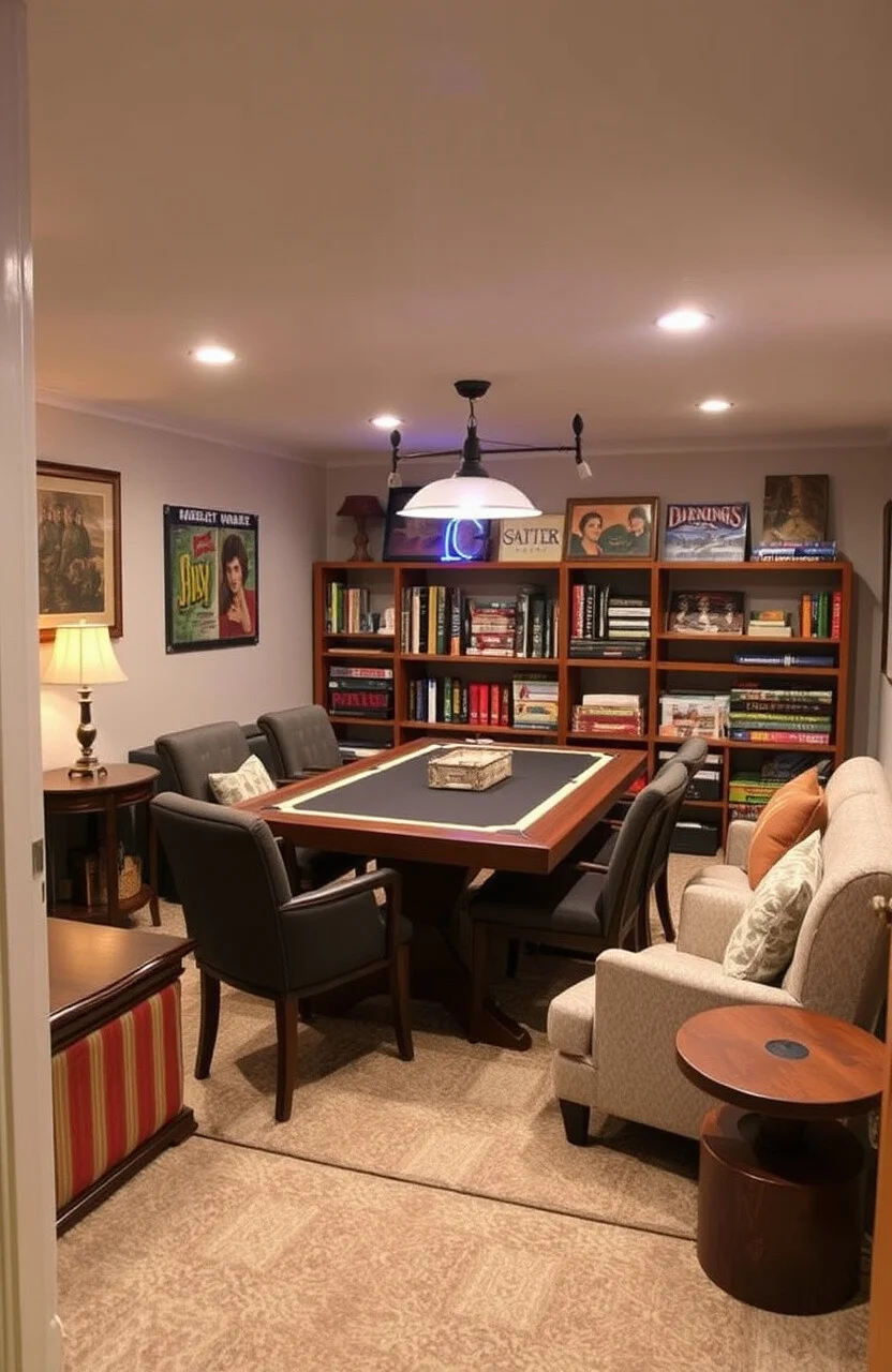 Set up a board game retreat with a large table, comfy chairs, and shelves for your game collection. Add fun lighting and themed decor for a playful atmosphere.